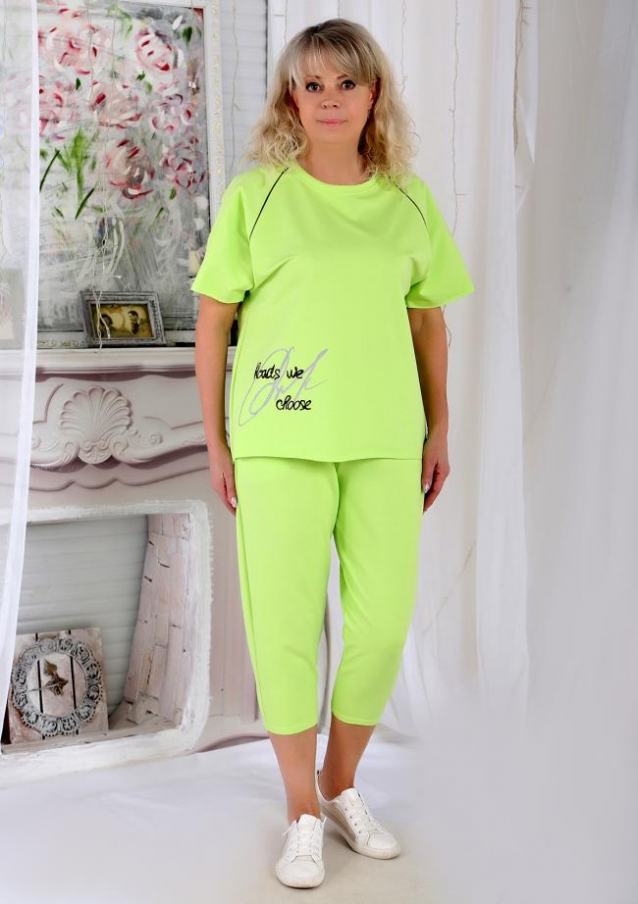 Расцветки: Салатовый Ткань: Футер с лайкрой Состав: Хлопок 74%, п/э 20%, лайкра 6% Размеры: 46, 48, 50, 52, 54, 56