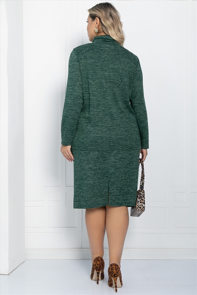 Костюм-двойка, состоящий из юбки на резинке и джемпера прямого кроя. Очень удобный комплект для создания стильного повседневного или делового образа. Удлинённый джемпер прямого кроя имеет акцентный вырез горловины и длинный рукав. Юбка прямого кроя, по талии на комфортной резинке.
