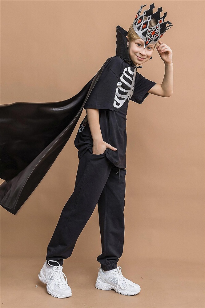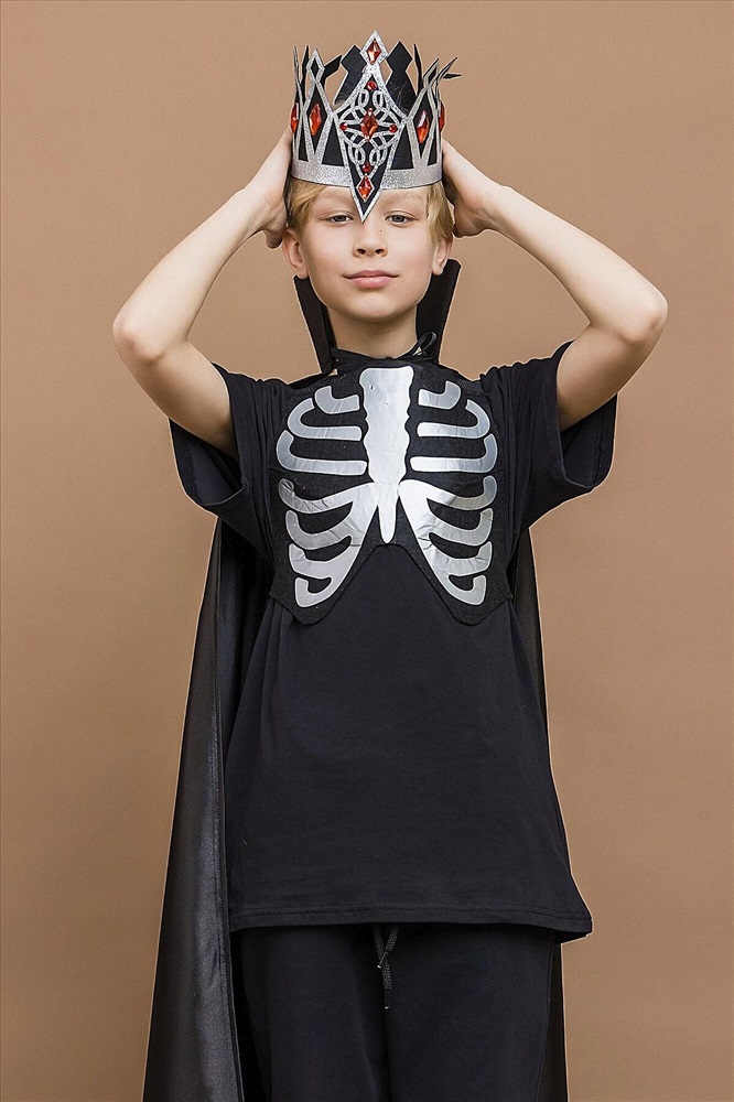 Карнавальный костюм Кощей для мальчиков — эффектный образ сказочного злодея! В комплект входит длинный черный плащ, стильный нагрудник на резинках и корона. Костюм идеально подходит для утренников, праздников и тематических вечеринок. Легкий и удобный, позволяет ребенку чувствовать себя свободно и уверенно.