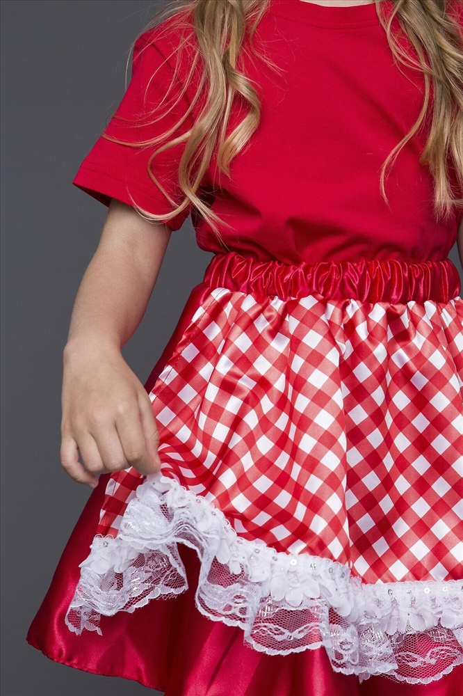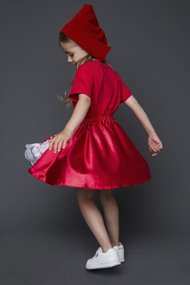 Карнавальный костюм «Красная Шапочка» — очаровательный образ для девочки. В комплект входят юбка с фартуком и фирменная красная шапочка. Лёгкий и удобный костюм идеально подойдёт для утренников, детских праздников и театральных постановок.