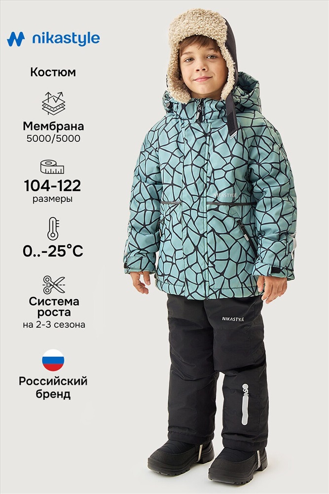 ID товара: 1125187 Сезон: Осень/Зима Длина: Полная Фасон: Прямой Рукав: Длинные Вид застежки: Молния Подкладка: флис + п/э (100% полиэстер) Рисунок: Абстракция Тип карманов: Прорезные Утеплитель: Fiberlite 250 (100% полиэстер) Стиль: Повседневный Материал верха: МЕМБРАНА BREATEX Teflon 5000/5000 (100% полиэстер) Мембрана: Да Мех опушки: без опушки Температурный режим: От 0°С до -25°С Страна бренда: Россия Страна производства: Россия Костюм САФАРИ с системой роста на один размер (длина рукавов и брючин увеличивается на 4-5см).Костюм из мембранной ткани 5000/5000 с водо- грязеотталкивающей технологией TEFLON. Мембранная ткань это не продуваемый и водонепроницаемый материал, который надежно защищает от ветра и влаги. Благодаря дышащим свойствам мембраны ребенку будет комфортно в любую погоду и он не вспотеет. Ткань обработана снаружи экологически чистым протектором TEFLON для защиты от воды и грязи.Мембрана в сочетании с утеплителем нового поколения FIBERlite сохраняет тепло во время прогулок, позволяя телу дышать. Флисовая подкладка отводит влагу и имеет хорошие теплоизоляционные свойства.Функционал: - центральная застежка и карманы на молнии, - ветрозащитная планка, - съемный капюшон на молнии, - кулиса для регулировки объема по капюшону и по низу куртки, - мягкие трикотажные манжеты в рукавах, - внутренние бретели для возможности снять куртку в помещении. Мы все продумали до мелочей, поэтому брюки дополнительно оснащены:- регулируемыми бретелями и отстегивающейся спинкой, - удобными карманами,- снегозащитными муфтами,- силиконовыми штрипками, - флисовой подкладкой до середины бедра, - светоотражающими элементами для безопасности ребенка в темное время суток. Область колен и шов сидения проклеены, места повышенного трения выполнены из усиленной ткани.Комфортная температура эксплуатации от 0°С до -25° С. Рекомендуем приобрести комплектом аксессуары, обувь и другие вещи из капсулы в карточке товара, которые отлично сочетаются с изделиями коллекции. Комментарии к товару