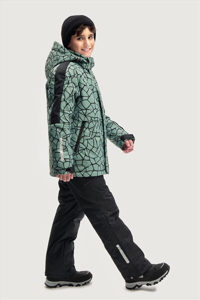 ID товара: 1125191 Сезон: Осень/Зима Длина: Полная Фасон: Прямой Рукав: Длинные Вид застежки: Молния Подкладка: флис + п/э (100% полиэстер) Рисунок: Абстракция Тип карманов: Прорезные Декоративные элементы: С капюшоном Утеплитель: Fiberlite 250 (100% полиэстер) Стиль: Повседневный Материал верха: МЕМБРАНА BREATEX Teflon 5000/5000 (100% полиэстер) Мембрана: Да Мех опушки: без опушки Температурный режим: От 0°С до -25°С Страна бренда: Россия Страна производства: Россия Костюм САФАРИ из мембранной ткани 5000/5000 с водо-грязеотталкивающей технологией TEFLON. Мембранная ткань это не продуваемый и водонепроницаемый материал, который надежно защищает от ветра и влаги. Благодаря дышащим свойствам мембраны ребенку будет комфортно в любую погоду, и он не вспотеет. Ткань обработана снаружи экологически чистым протектором TEFLON для защиты от воды и грязи. Мембрана в сочетании с утеплителем нового поколения FIBERlite сохраняет тепло во время прогулок, позволяя телу дышать. Флисовая подкладка отводит влагу и имеет хорошие теплоизоляционные свойства. Функционал: - центральная застежка и карманы на молнии, - внутренний карман на молнии, - ветрозащитная планка, - съемный капюшон на молнии, - кулиса для регулировки объема по капюшону и низу куртки, - трикотажные манжеты в рукавах, - карман на рукаве под ски-пасс, - регулировка ширины низа рукава, - внутренние бретели для возможности снять куртку в помещении, - снегозащитная юбка. Мы все продумали до мелочей, поэтому брюки дополнительно оснащены: - регулируемыми бретелями и отстегивающейся спинкой, - удобными карманами, - снегозащитными муфтами, - регулировкой объема брюк под обувь на молнии, - флисовой подкладкой до середины бедра, - светоотражающими элементами для безопасности ребенка в темное время суток. Область колен и шов сидения проклеены, места повышенного трения выполнены из особо прочной ткани. Комфортная температура эксплуатации от 0°С до -25° С. Рекомендуем приобрести комплектом аксессуары, обувь и другие вещи из капсулы в карточке товара, которые отлично сочетаются с изделиями коллекции. Комментарии к товару
