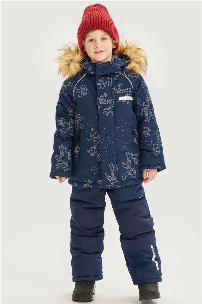 Костюм ДРУЗЬЯ с системой роста на один размер (длина рукавов и брючин увеличивается на 4-5см).Костюм из мембранной ткани 5000/5000 с водо- грязеотталкивающей технологией TEFLON. Мембранная ткань это не продуваемый и водонепроницаемый материал, который надежно защищает от ветра и влаги. Благодаря дышащим свойствам мембраны ребенку будет комфортно в любую погоду и он не вспотеет. Дополнительно на ткань нанесен светоотражающий принт. Ткань обработана снаружи экологически чистым протектором TEFLON для защиты от воды и грязи.Мембрана в сочетании с утеплителем нового поколения FIBERlite сохраняет тепло во время прогулок, позволяя телу дышать. Флисовая подкладка отводит влагу и имеет хорошие теплоизоляционные свойства.Функционал: - центральная застежка и карманы на молнии, - ветрозащитная планка, - съемный капюшон и меховая опушка на молнии, - кулиса для регулировки объема по капюшону и по низу куртки, - мягкие трикотажные манжеты в рукавах, - внутренние бретели для возможности снять куртку в помещении. Мы все продумали до мелочей, поэтому полукомбинезон дополнительно оснащен:- регулируемыми бретелями, - удобными карманами, - снегозащитными муфтами, - силиконовыми штрипками, - флисовой подкладкой до середины бедра, - светоотражающими элементами для безопасности ребенка в темное время суток. Область колен и шов сидения проклеены, места повышенного трения выполнены из усиленной ткани.Комфортная температура эксплуатации от 0°С до -30° С. Рекомендуем приобрести комплектом аксессуары, обувь и другие вещи из капсулы в карточке товара, которые отлично сочетаются с изделиями коллекции.