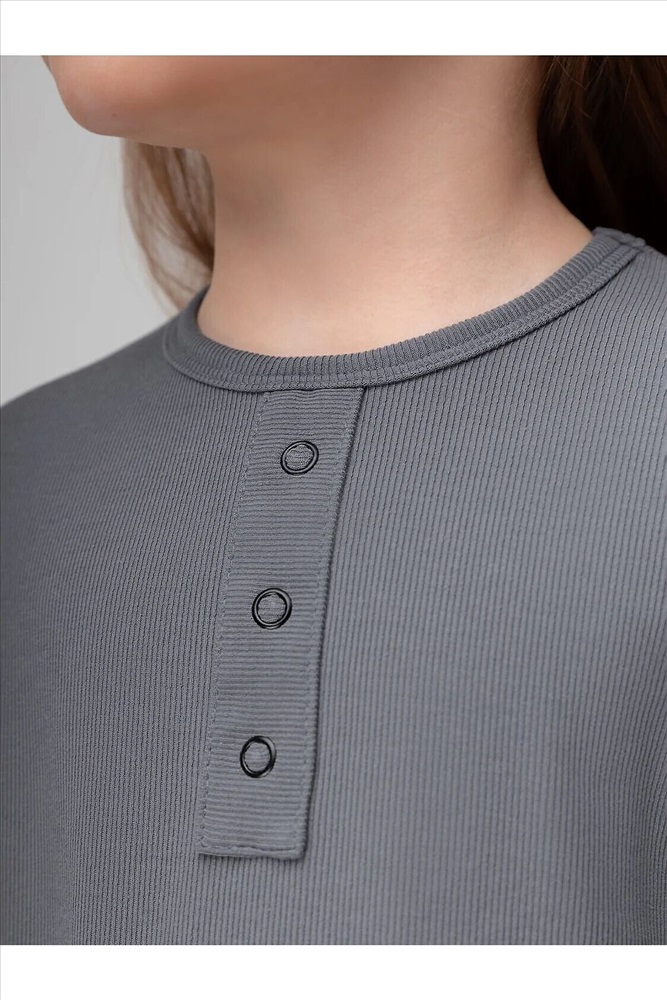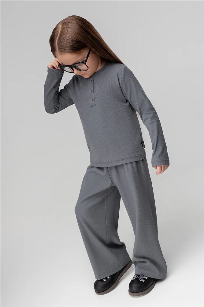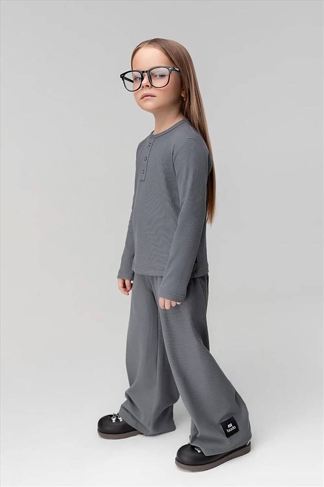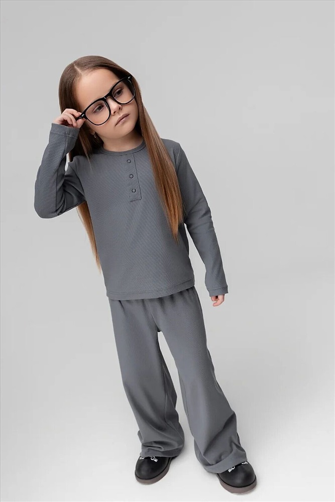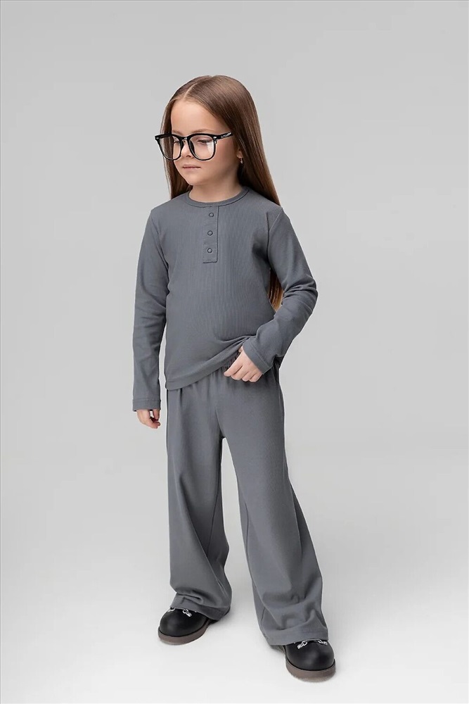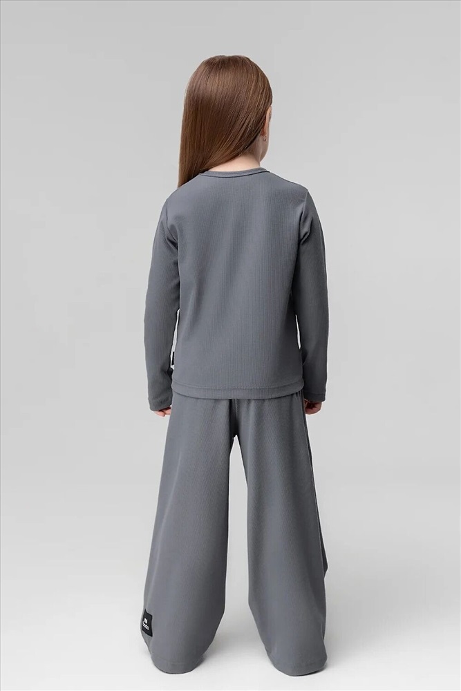Костюм: лонгслив и брюки. Лонгслив прилегающего силуэта с длинным рукавом. Горловина округлой формы.