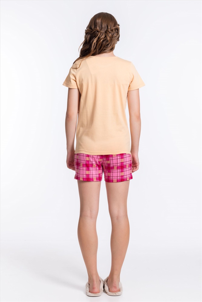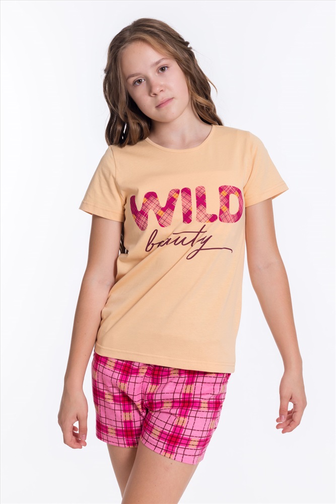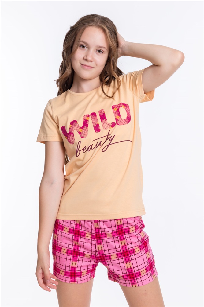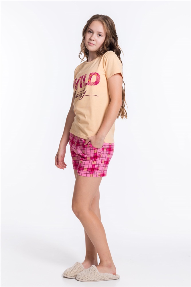 Застежка: Без застежки С капюшоном: Нет С карманами: Нет Сезон: Летний Состав: Хлопок 100% Цвет Номенклатуры: бежевый Уютный домашний костюм для девочки изготовлен из натурального хлопкового полотна, которое обеспечивает комфорт и позволяет коже дышать. Костюм состоит из футболки с круглым вырезом горловины и шорт с поясом на резинке и карманами по бокам. Футболка с принтом спереди — стильный элемент костюма, который понравится вашей девочке. Шорты обеспечивают свободу движений и удобство, а пояс на резинке гарантирует комфортную посадку. Такой домашний костюм идеально подойдёт для повседневной носки, отдыха или сна. Он станет отличным дополнением к гардеробу вашей девочки. Комментарии к товару