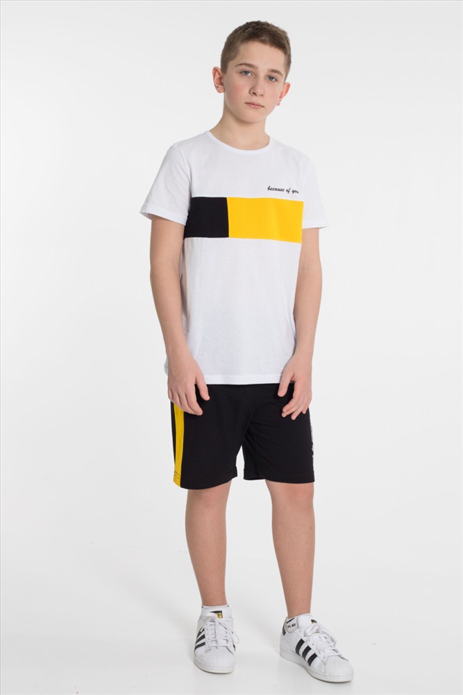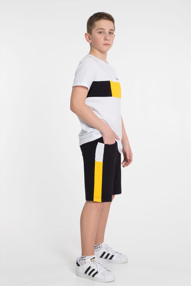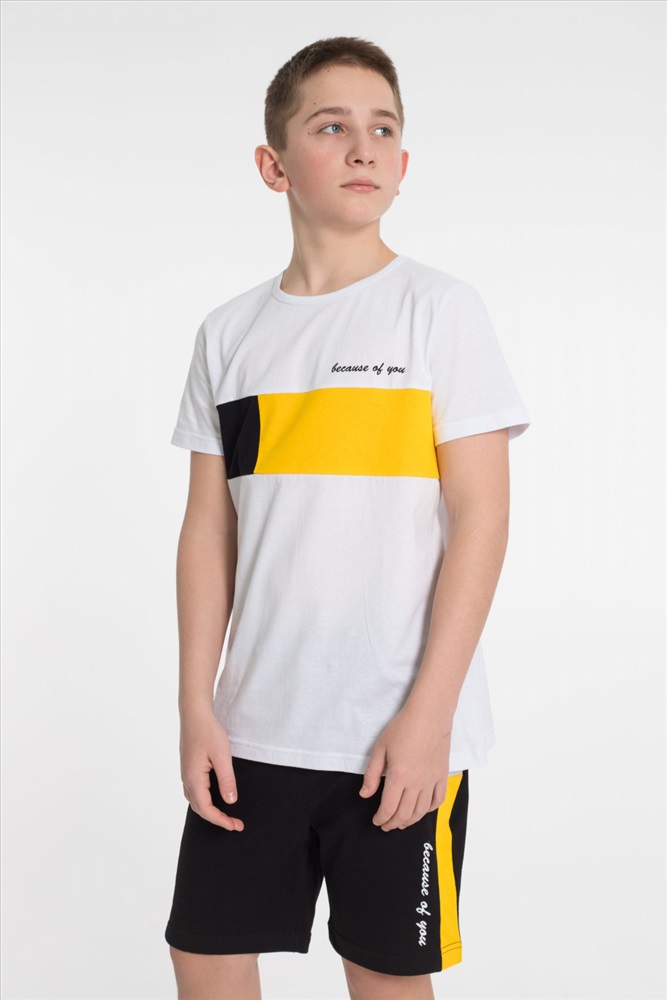 Застежка: Без застежки С капюшоном: Нет С карманами: Нет Сезон: Летний Состав: Хлопок 100% Цвет Номенклатуры: белый Летний костюм из кулирки 3-х цветов. Шорты с боковыми карманами и отделочной боковой полосой 2-х цветов. Футболка - отделочная средняя вставка так же 2-х цветов. На кокетке футболки и правой передней половинке шорт принт. Комментарии к товару