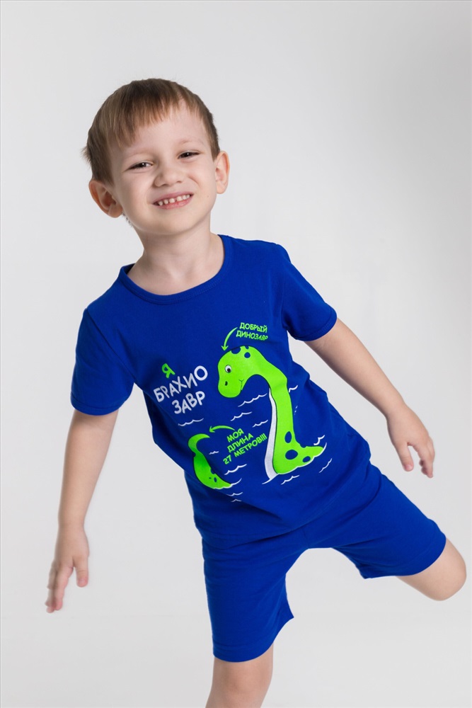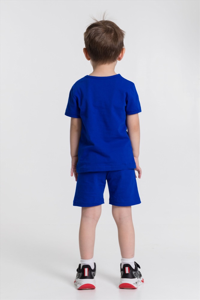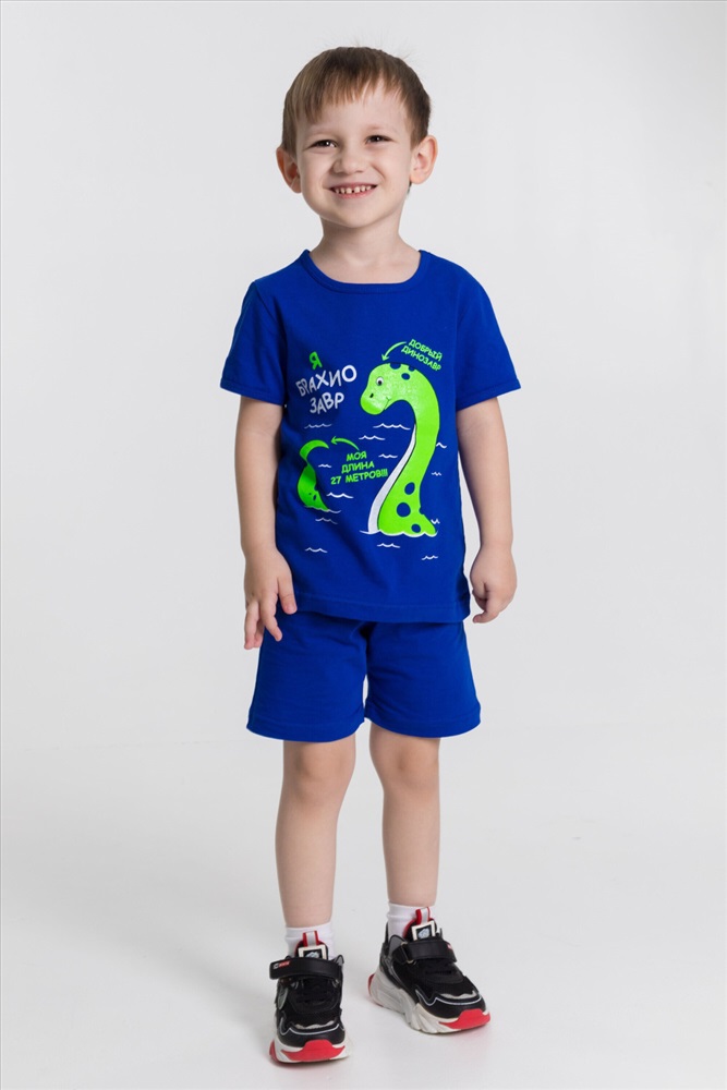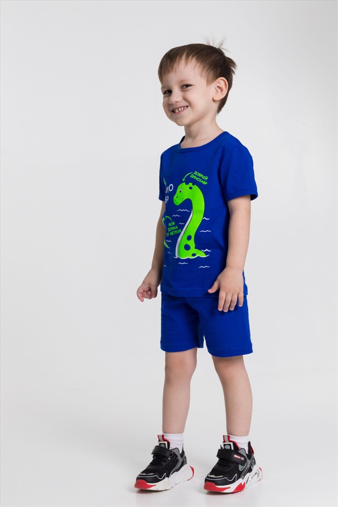 Застежка: Без застежки С капюшоном: Нет С карманами: Нет Сезон: Летний Состав: Хлопок 100% Цвет Номенклатуры: васильковый Костюм для мальчиков из х/б полотна. На футболке принт. Комментарии к товару