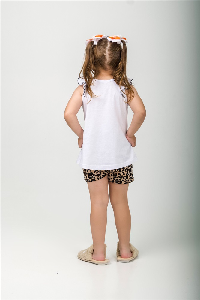 Майка - однотонная полочка с принтом, по пройме крылышки, низ спинки длиннее, чем у полочки.
