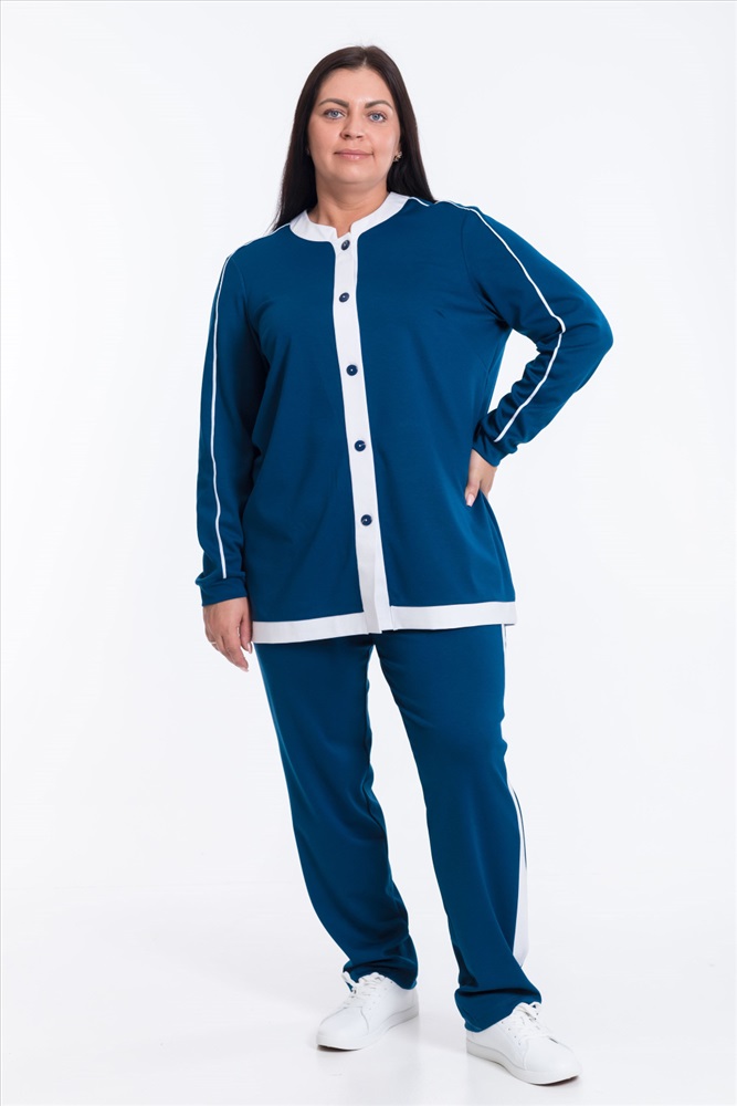 Застежка: Без застежки С капюшоном: Нет С карманами: Нет Сезон: Всесезонный Состав: Вискоза 30% Нейлон 50% ПЭ 15% Спандекс 5% Цвет Номенклатуры: морская волна Женский костюм — стильный и практичный выбор для повседневного гардероба. Он состоит из кардигана и брюк, выполненных из академика. Кардиган имеет застёжку на пуговицы. Отделка по рукавам, фигурный вырез горловины и контрастная отделка по низу и планкам придают изделию элегантный вид. Воротник гармонирует с отделкой, создавая завершённый образ. Брюки прямые, зауженные к низу, что обеспечивает свободу движений и комфорт при ходьбе. Боковые карманы и лампасы отделочного цвета добавляют функциональность и оригинальность. Резинка в поясе обеспечивает удобную посадку. Такой костюм идеально подойдёт для повседневной носки, работы или неформальных встреч. Он отлично сочетается с различными аксессуарами и обувью, позволяя создавать разнообразные стильные образы. Комментарии к товару