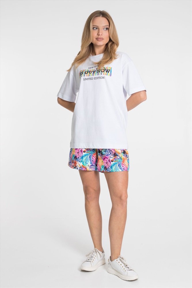Застежка: Без застежки С капюшоном: Нет С карманами: Нет Сезон: Всесезонный Состав: Хлопок 95% Лайкра 5% Цвет Номенклатуры: белый Женский костюм — отличный выбор для жаркой погоды. Он состоит из свободных шорт и футболки, выполненных из лёгких и приятных к телу материалов. Футболка из однотонной кулирки свободного силуэта придаёт изделию комфорт и удобство. На передней части расположен принт, который гармонично сочетается с цветом шорт и добавляет яркости модели. Шорты изготовлены из футера с добавлением лайкры, что обеспечивает эластичность и свободу движений. Пояс на резинке и шнур позволяет регулировать посадку, а боковые карманы — хранить мелочи под рукой. Такой костюм идеально подойдёт для прогулок, отдыха на пляже или неформальных мероприятий. Комментарии к товару