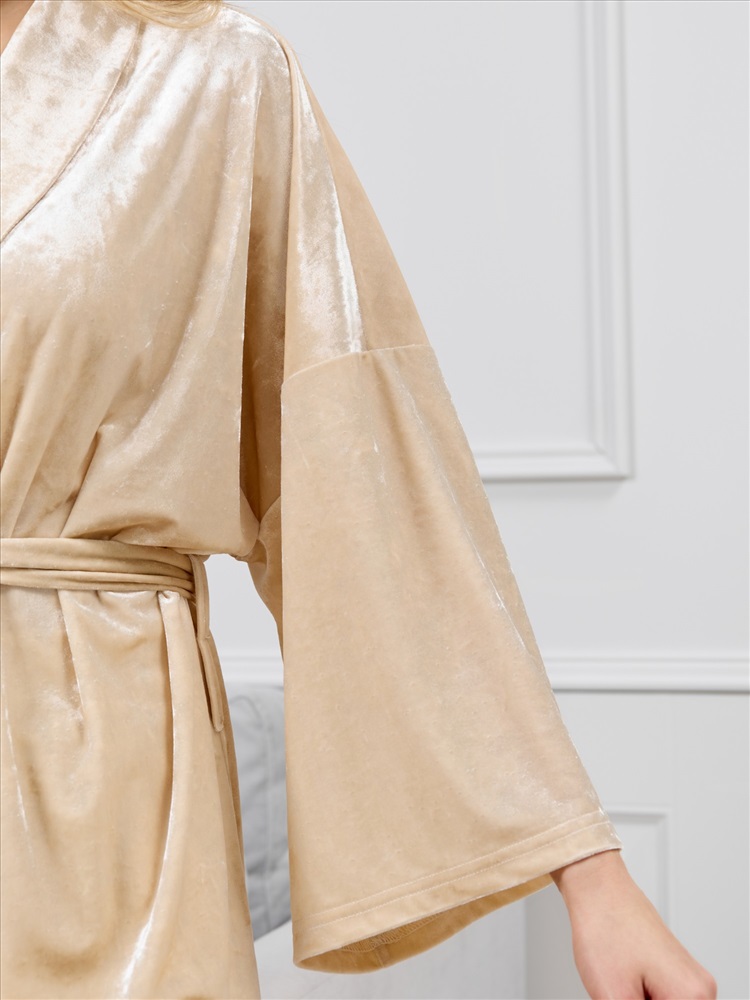 Состав: 95% ПЭ, 5% спандекс Ткань: Велюр стрейч Костюм молодежный из гладкокрашенного полотна «велюр стрейч» с мраморным эффектом, состоящий из кимоно и брюк. Кимоно прямого кроя, свободное, на запахе, с втачными рукавами ¾ длины и съемным поясом, фиксирующимся на талии двумя шлевками в боковых швах.Брюки свободные, на притачном поясе с эластичной тесьмой внутри и карманами в боковых швах. Комментарии к товару