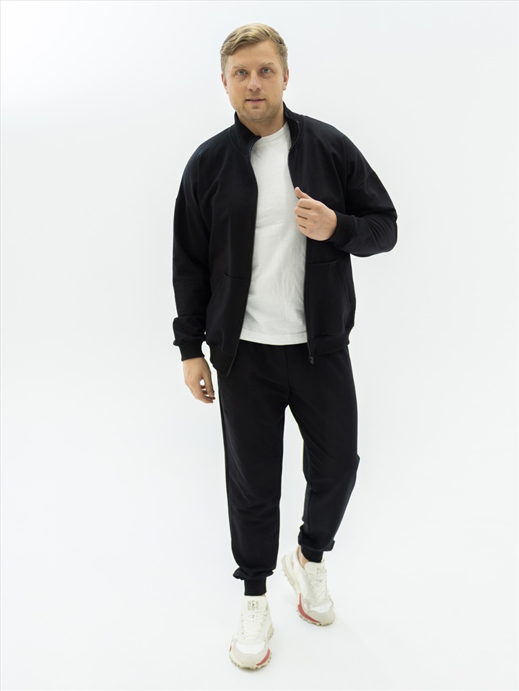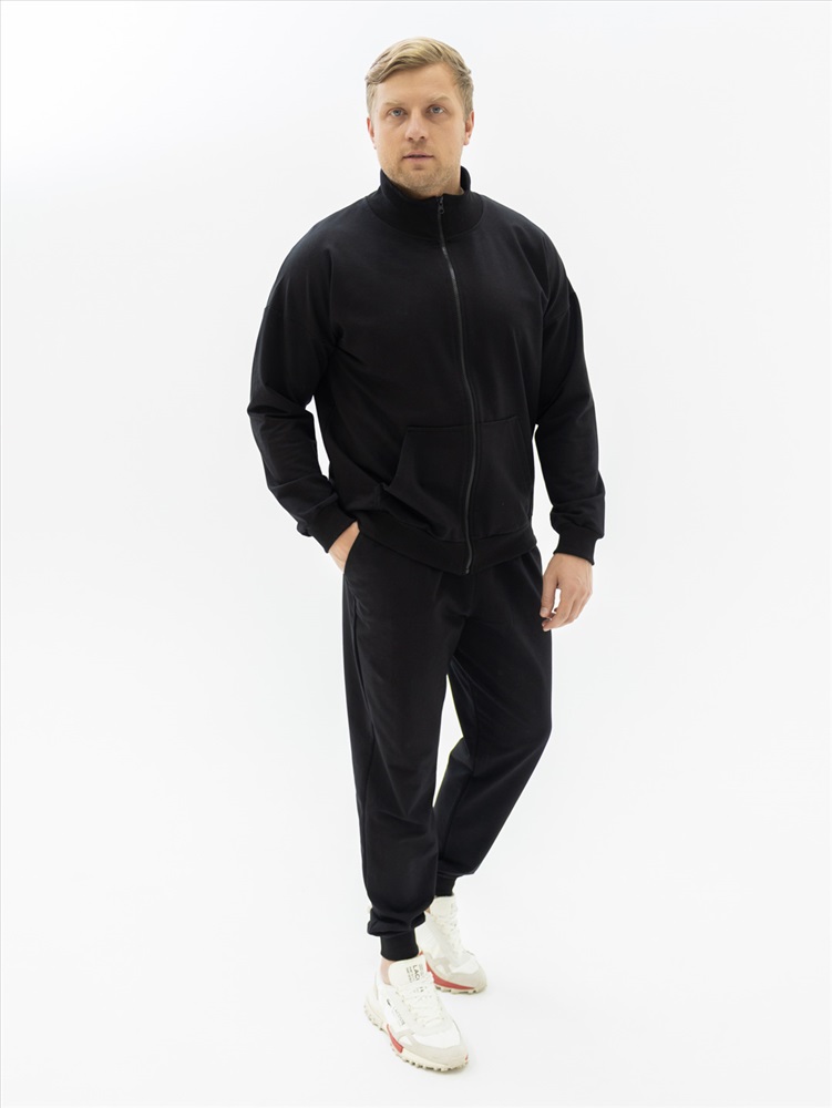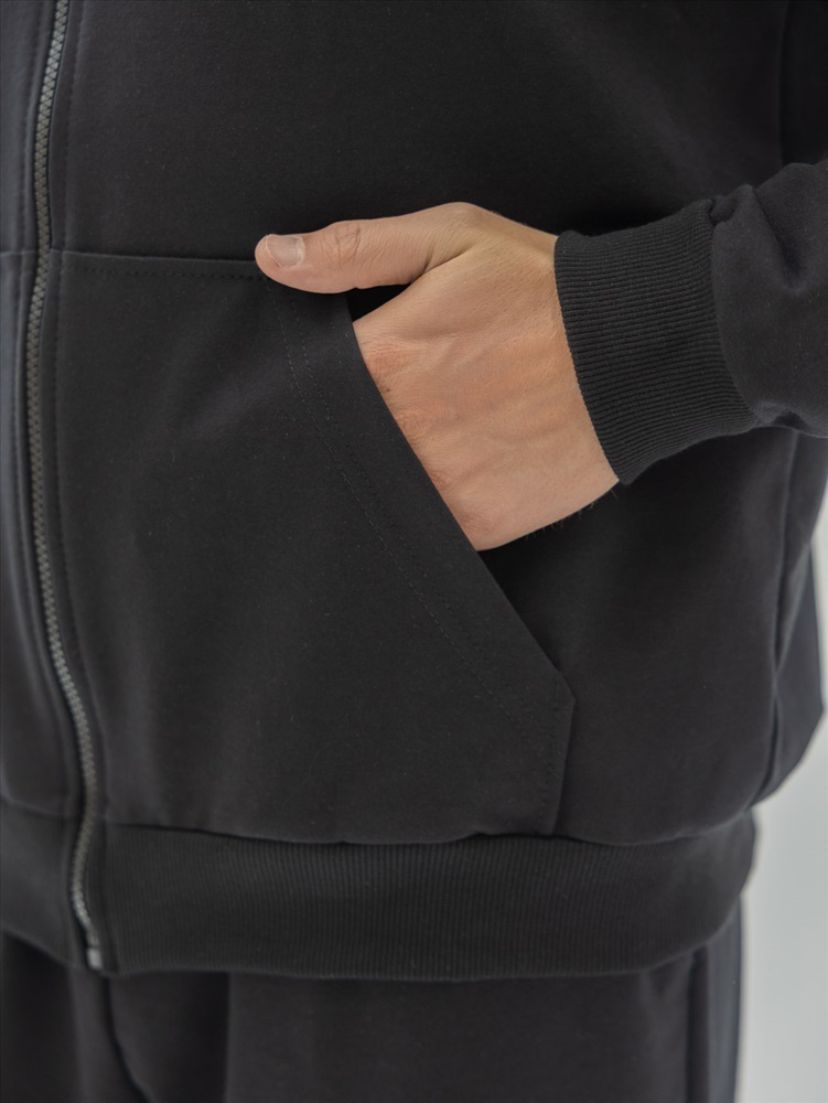 Спортивный костюм черного цвета - идеальный выбор для активного образа жизни! Удобные брюки и толстовка на молнии из качественного материала обеспечат комфорт и свободу движений во время тренировок или прогулок на свежем воздухе.