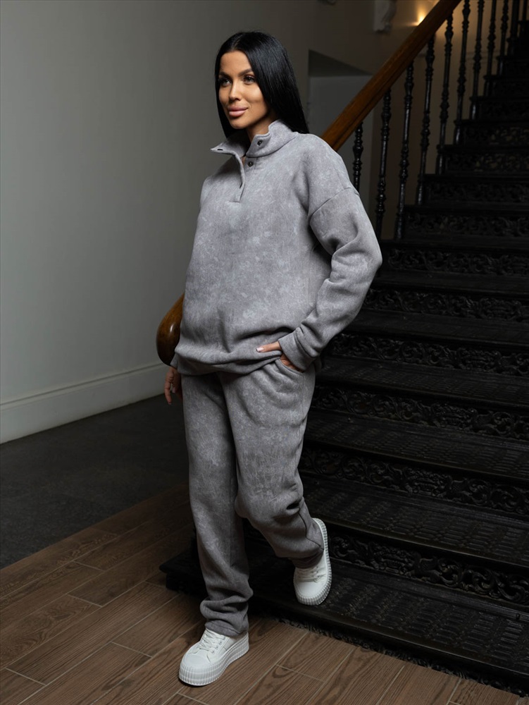 Зимний костюм из ультра модной ткани с начесом, эффект варенки добавляет изюминку изделию. Толстовка с воротником на кнопках защитит в морозы, сохранит тепло и комфорт. Брюки полной длины с карманами можно заправить в ботинки. В нашем костюме вы будете чувствовать себя уютно даже в самый морозный день.