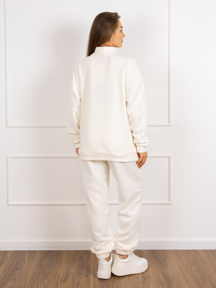 Артикул: НФ-00245645 Особенности модели: Утепленная Цвет: Молочный Бренд: Текс-плюс Состав материала: 100% Полиэстер Материал: Флис Для: Женщин Вид изделия: Костюмы с брюками Плотность материала: 230 г/м2 Комплектация: Брюки - 1шт., Толстовка - 1 шт. Код товара: НФ-00245645 Костюм женский утепленный. Худи в стиле "оверсайз", с воротником - стойка на молнии, спущенным рукавом на манжетах и вышивкой на груди. Брюки - прямые, с удобным поясом на резинке, для лучшей посадки, и глубокими карманами с отрезным бочком. Низ брюк на резинке. Данный костюм - это уникальное сочетание стиля и комфорта в одной модели. Комментарии к товару