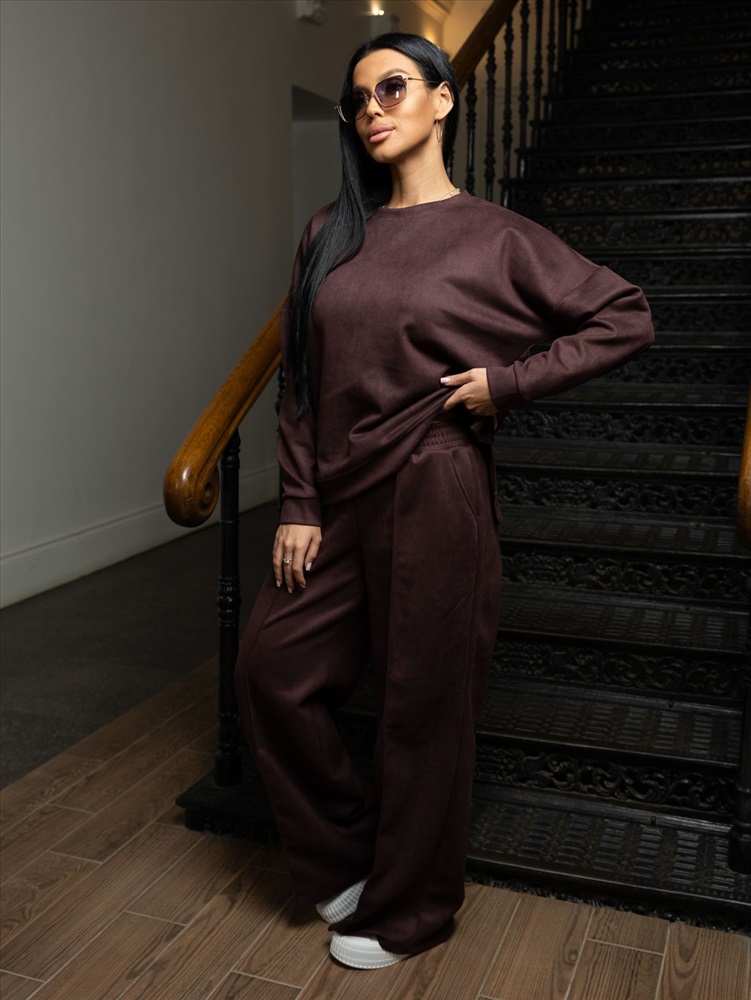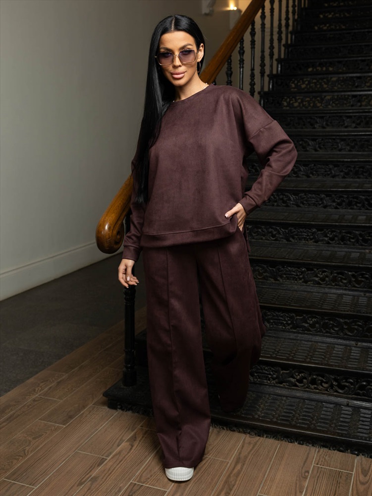 Артикул: НФ-00245118 Особенности модели: Палаццо Цвет: Коричневый Бренд: Текс-плюс Состав материала: 95% Полиэстер / 5% Эластан Материал: Замша Для: Женщин Вид изделия: Костюмы с брюками Комплектация: Брюки - 1 шт., Кофта - 1 шт. Код товара: НФ-00245118 Почувствуйте себя королевой комфорта и стиля с нашим новым брючным костюмом! Двойка выполнена из мягкой и приятной на ощупь замши – прекрасный выбор на весну и осень. Оверсайз крой свитшота скрывает недостатки фигуры, разрезы по бокам и удлиненная спинка придают изюминку образу. А свободные штаны палаццо со стрелками – настоящая находка для современной девушки. Качественная одежда в стиле спорт-шик дарит уверенность себе и отличное настроение! Комментарии к товару
