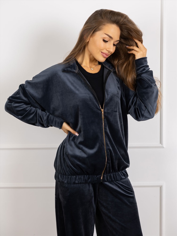 Женский велюровый костюм: худи и брюки из приятного к телу материала с качественной фурнитурой. Толстовка с воротником стойкой окантованной внутри , спущенным плечом, широкой манжетой по рукаву и резинкой по низу изделия. Брюки на поясе-резинке с несколькими декоративным строчками, карманами в боковых швах с отрезным бочком и затяжкой по низу брюк.
