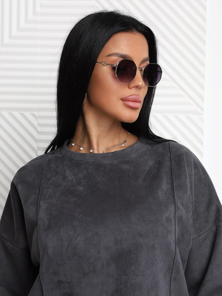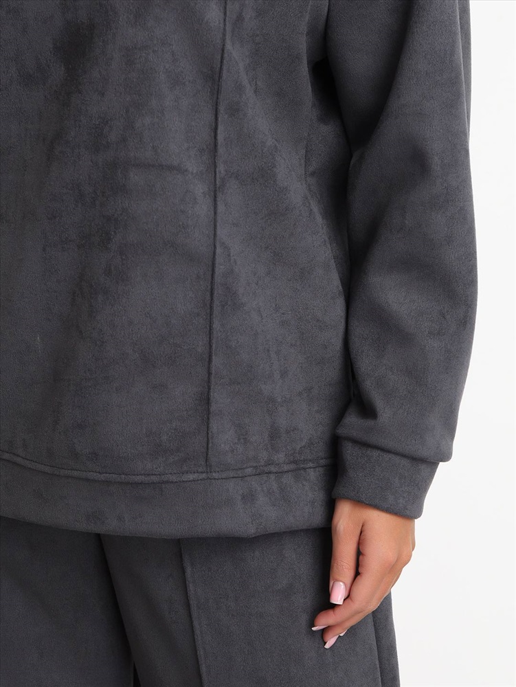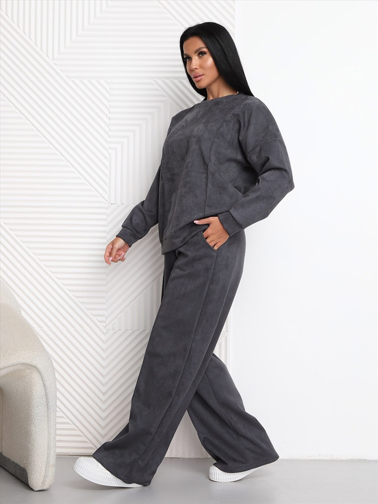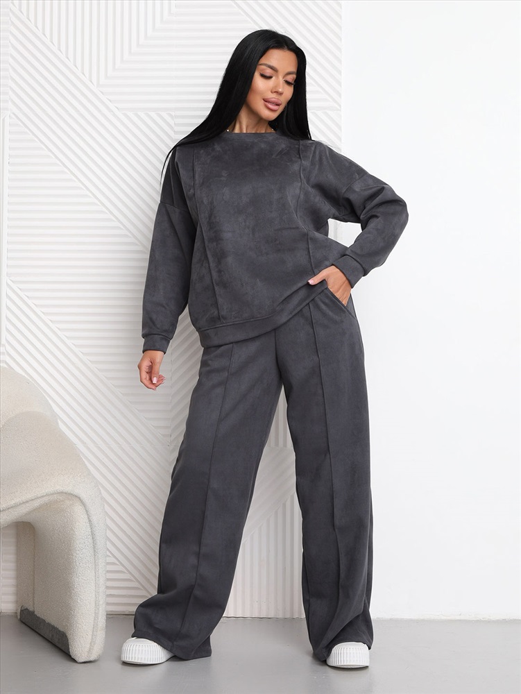 Артикул: НФ-00245771 Особенности модели: Палаццо со стрелками Бренд: Текс-плюс Состав материала: 95% Полиэстер / 5% Эластан Цвет: Темно - серый Материал: Замша Для: Женщин Вид изделия: Костюмы с брюками Комплектация: Брюки - 1 шт., Кофта - 1 шт. Код товара: НФ-00245771 Брючный замшевый костюм из качественного приятного на ощупь полотна. Толстовка выполнена в стиле спорт шик со спущенным плечом, О-образной горловиной, стрелками на полочке и манженой по низу изделия и рукаву. Брюки прямого кроя, со стрелками и карманами в боковых швах, полной длины. Комментарии к товару