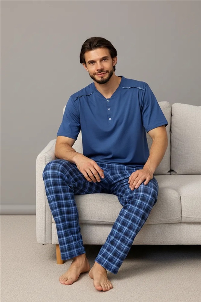Классический домашний комплект мужской от бренда Lika Dress - идеальный вариант для отдыха, для сна и других домашних активностей. На футболке есть кнопки, которые облегчают надевание и выглядят стильно и современно. Мягкое трикотажное полотно домашней пижамы обеспечит комфорт и свободу движений. Одежда подходит для ночного сна и дневного отдыха. Ношение такого натурального комплекта действует успокаивающе на нервную систему. Низ изделия с ярким и небанальным, немарким принтом делает этот костюм еще более привлекательным. Брючки с удобной посадкой на вшитой резинке и с глубокими карманами. Свободная футболка имеет оригинальный рисунок.