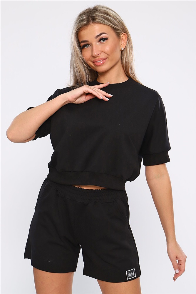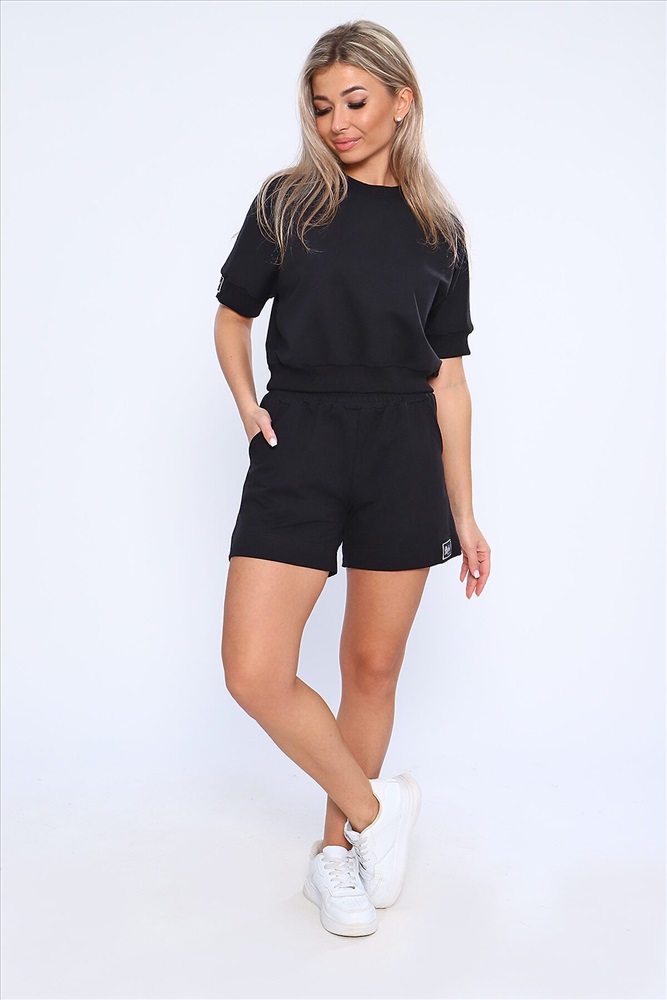 ID товара: 894438 Состав: Хлопок 75%; Полиэстер 20%; Лайкра 5% Сезон: Весна/Лето Длина: Средняя Фасон: Свободный крой Рукав: короткие Крой брючин: Прямой Тип карманов: В шве Основная ткань: Хлопок Стиль: Спорт-шик Вид ткани: Футер с лайкрой 2-х нитка Страна бренда: Россия Страна производства: Россия Костюм молодежный из футера 2-х нитки. Костюм с шортами и укороченной кофты. Кофта со спущенным рукавом, рукава и пояс на кашкорсе на одном из рукавов эмблема, шорты с карманами, пояс сделан поясной машиной, на подгибе тоже эмблема. На модели размер 46-48. Комментарии к товару