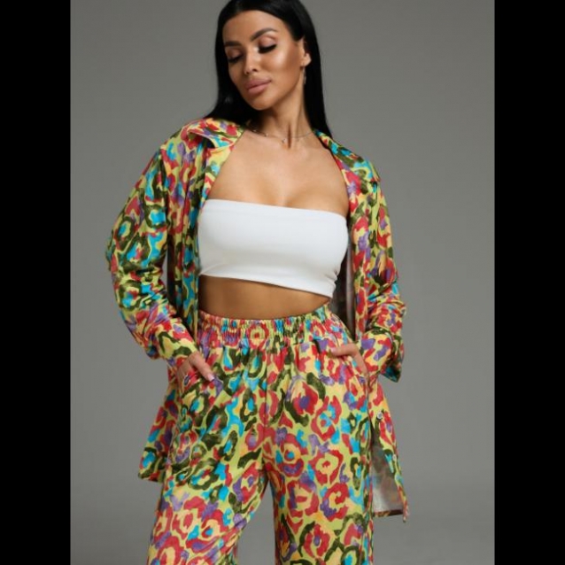 Костюм женский состоит из рубашки и брюк.