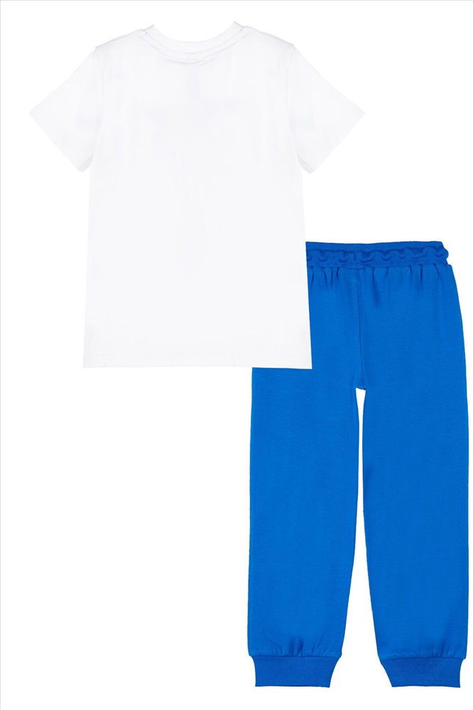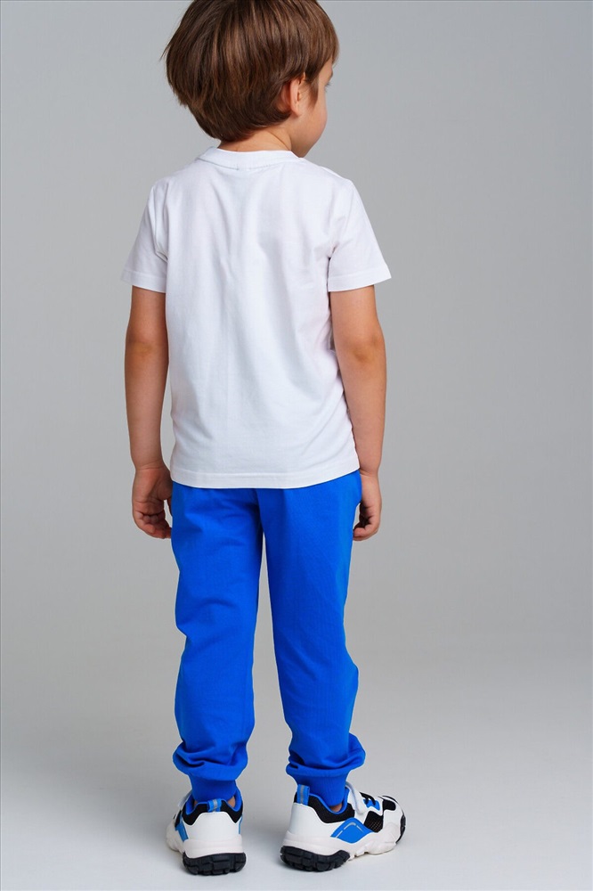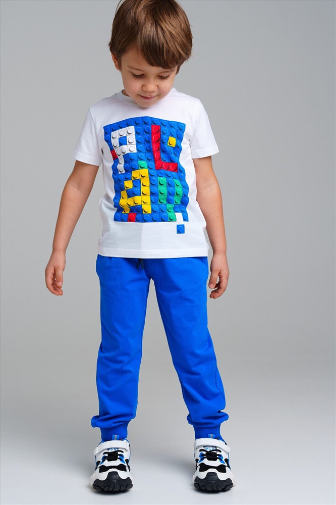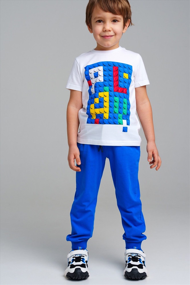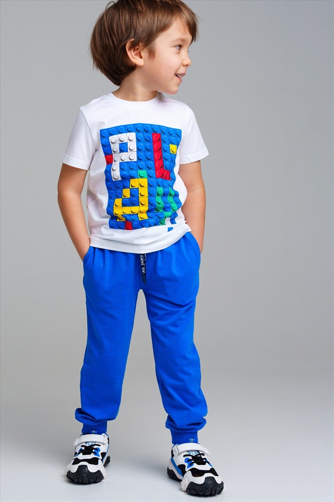 Комплект: футболка, брюки. Посадка regular fit. Из качественного эластичного и приятного на ощупь трикотажа джерси. Высокое содержание хлопка 95%. Благодаря наличию эластана в составе ткани изделие держит форму и меньше мнется. Принт сохраняет первоначальный вид даже после многочисленных стирок. Эластичный пояс с тесьмой позволяет легко надевать и утягивать до идеальной посадки в зависимости от комплекции ребенка. Нижняя кромка брючин в эластичный рубчик.