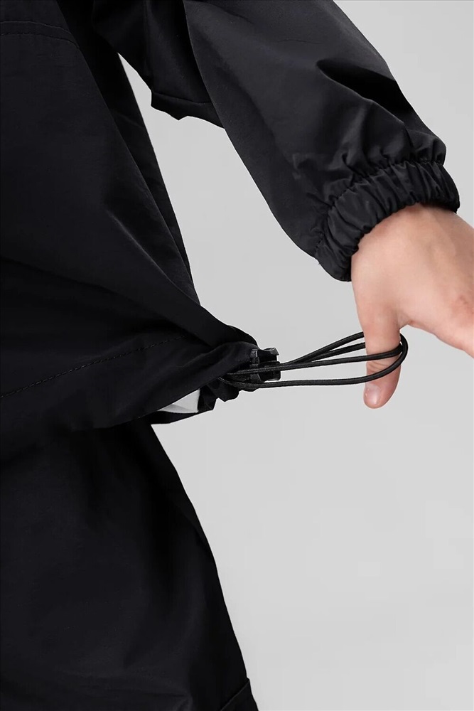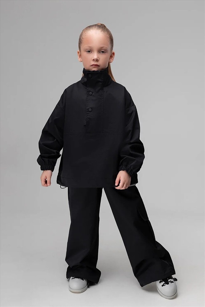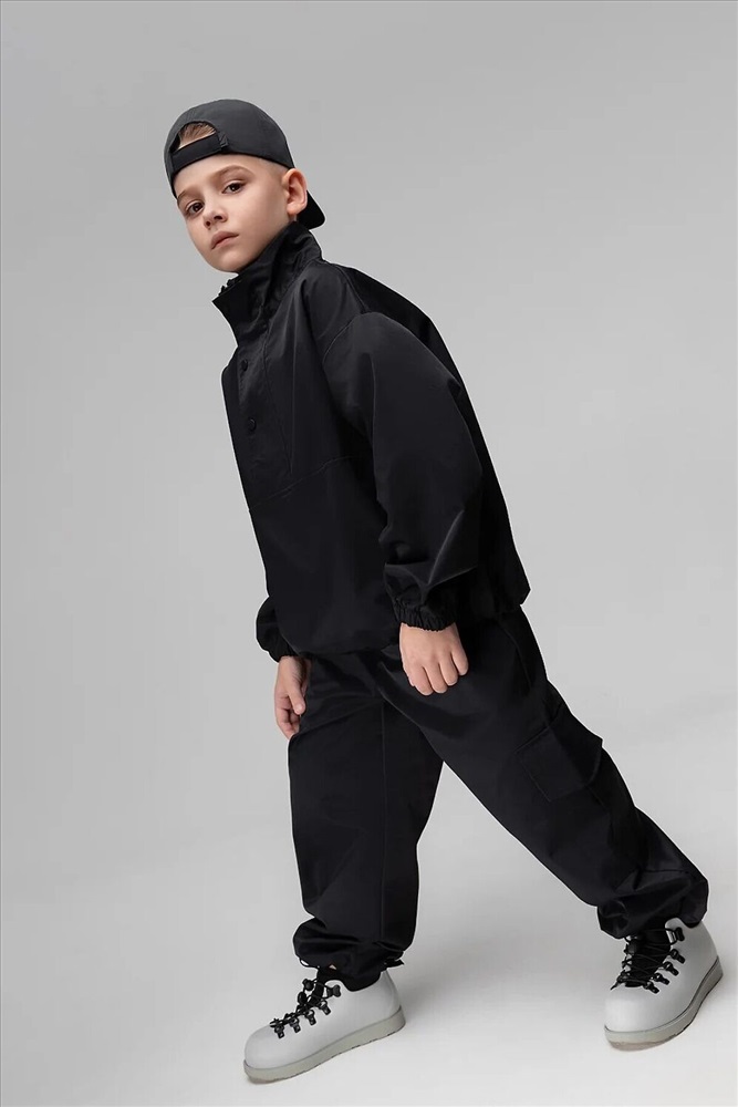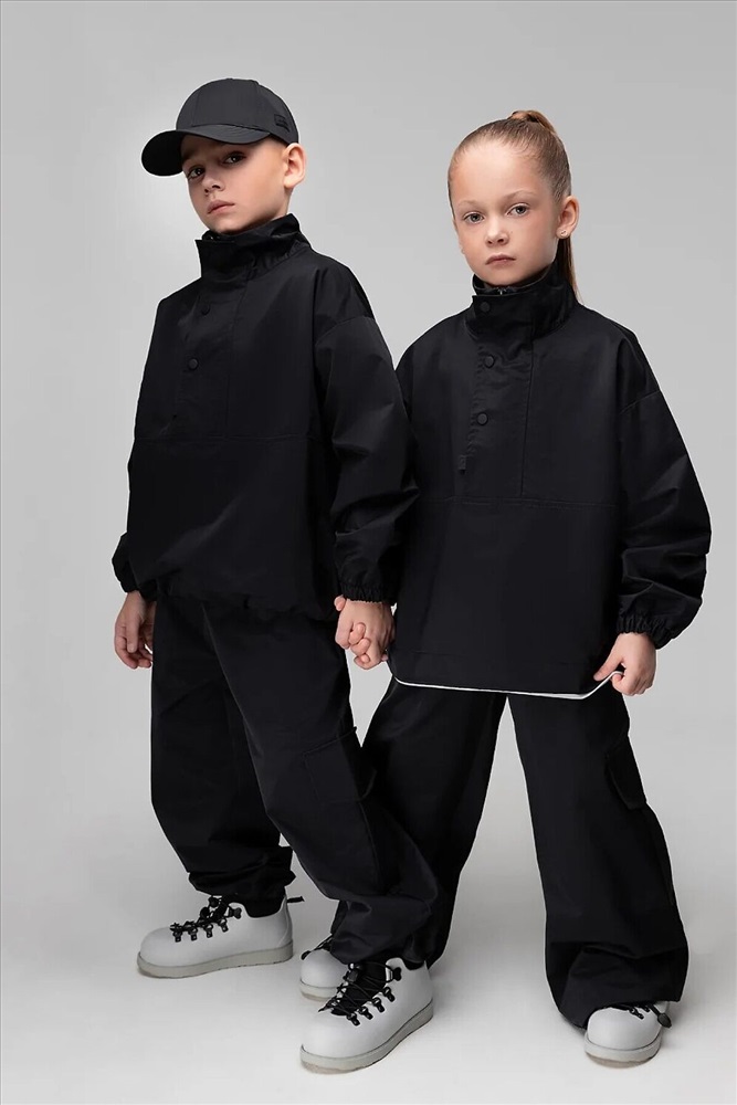 Костюм: анорак и брюки. Свободная куртка без подклада на молнии с планкой на кнопках. Рукава с манжетой на резинке. По низу куртки имеется утяжка. Свободные, прямые брюки на поясе с внутренней резинкой. Брюки с двумя видами карман, боковые карманы и накладной карман по левому боковому шву закрытый клапаном, по низу брюк имеется дополнительная резинка с фиксатором для затяжки. Внимание: в эти города продукция данного бренда не отгружается. Россия: Владивосток, Хабаровск, Махачкала. Казахстан: Павлодар, Семей, Кокшетау, Балхаш, Костанай, Усть-Каменогорск.