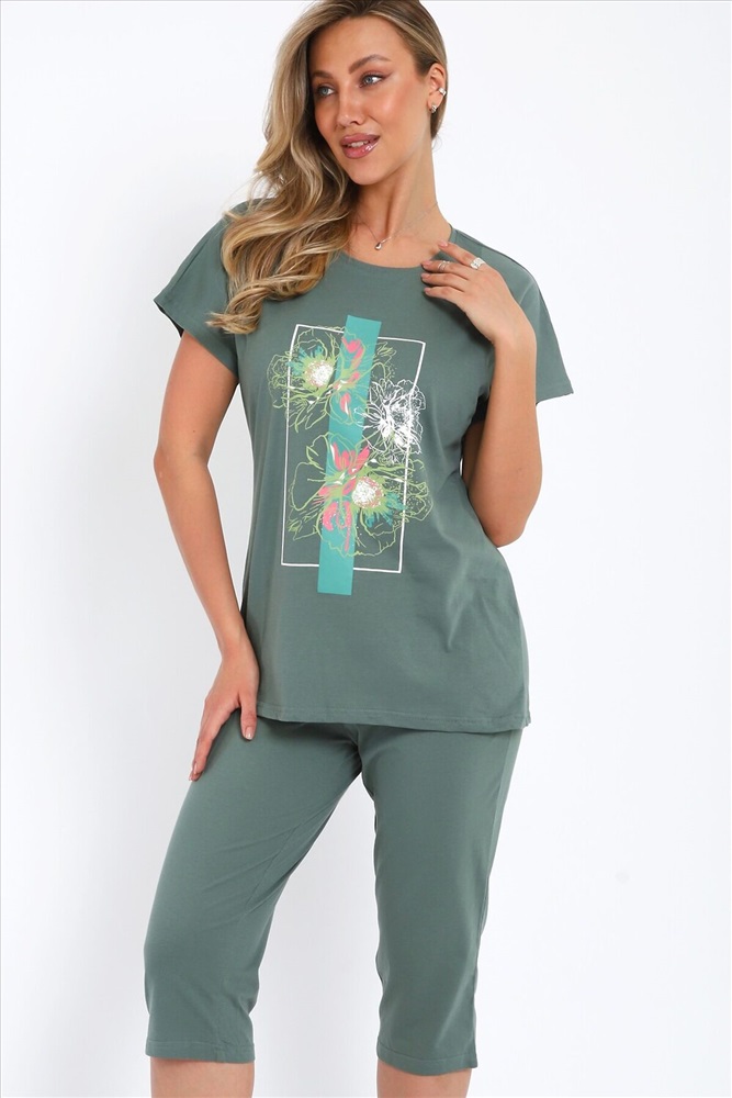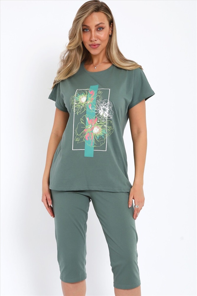 ID товара: 1123536 Состав: 100% Хлопок Сезон: Весна/Лето Длина: Средняя Фасон: Полуприлегающий Рукав: Короткие Крой брючин: Прямой Рисунок: цветочный Декоративные элементы: Принт Основная ткань: Хлопок Стиль: повседневный Вид ткани: Кулирка пенье Страна бренда: Россия Страна производства: Россия Летний костюм двойка для домашнего отдыха и сна из 100% хлопка. Футболка свободного кроя, удлиненная, с круглым вырезом горловины и коротким рукавом. Бриджи классической длины, прямого кроя. Мягкий и приятный к телу материал, обладающий высоким качеством, подарит вам настоящий уют на каждый день. Домашний костюм со штанами можно носить дома, на даче или использовать комплект как пижамный. Наш трикотажный костюм подойдет любой моднице. Такую домашнюю одежду для женщин можно использовать для йоги, активного отдыха, походов и прогулок весной и летом. Домашний костюм женский с бриджами с интересным рисунком соответствует моде и отлично подходит для повседневной носки. Домашняя одежда для женщин больших размеров подходит в качестве уличной, домашней и пляжной одежды. Пижама костюм яркого цвета с интересным рисунком соответствует моде и отлично подходит для повседневной носки. Дачный костюмчик больших размеров идеально подходит в качестве домашней одежды. Носите с удовольствием! Комментарии к товару