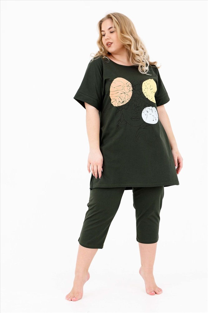 ID товара: 887297 Состав: 100% Хлопок Сезон: Весна/Лето Длина: Удлиненная Фасон: Полуприлегающий Рукав: короткие Крой брючин: Облегающий Рисунок: Абстракция Тип карманов: Прорезные Основная ткань: Хлопок | Кулирка Стиль: Повседневный Страна бренда: Россия Страна производства: Россия Хлопковый костюм с бриджами от бренда MODALINA состоит из: туники полуприлегающего силуэта с коротким рукавом и прорезными карманами, длина футболки - ниже бедер, горловина округлой формы, с ненавязчивым принтом. Бриджи классической длины с прорезными карманами, с широкой резинкой, которая не передавливает животик. Комментарии к товару