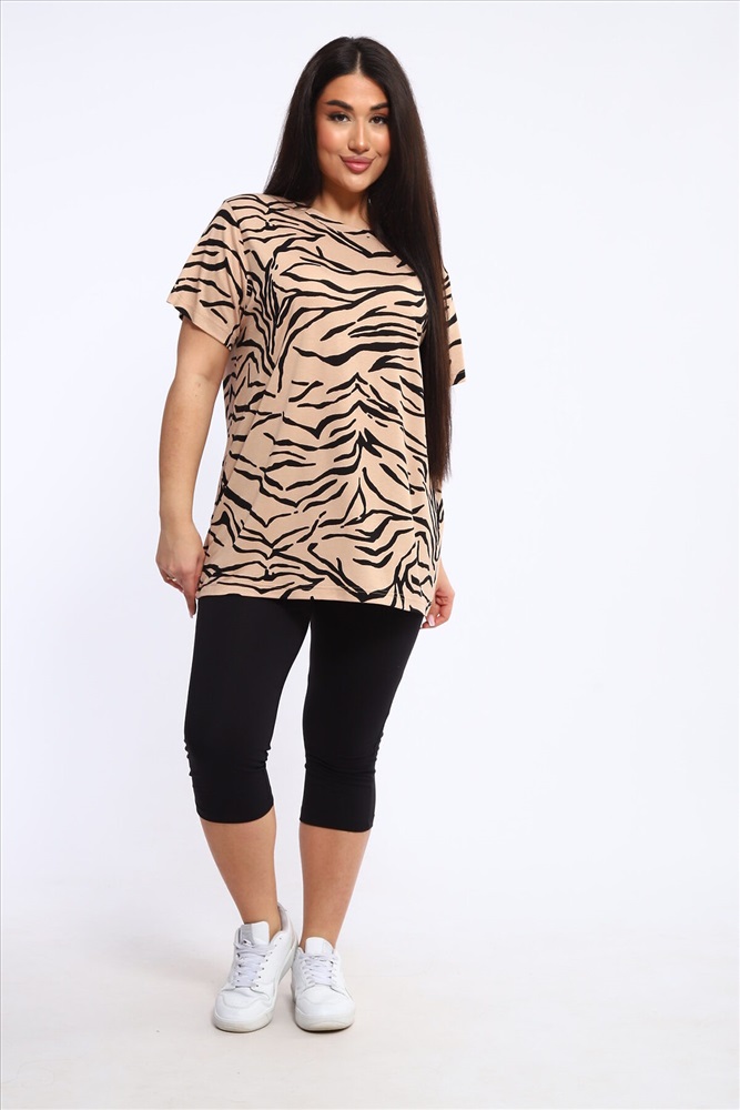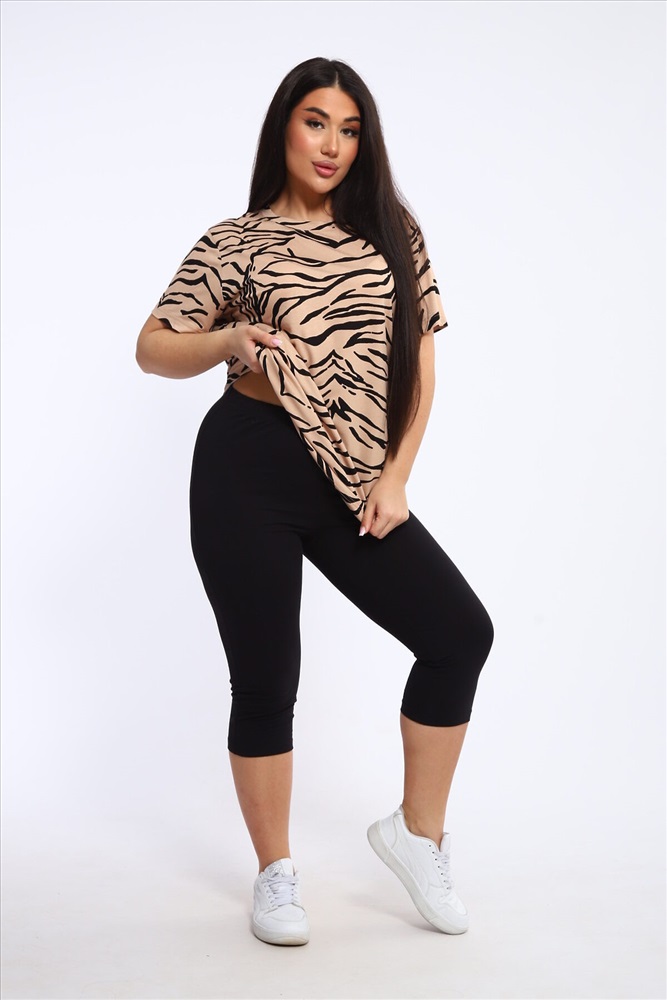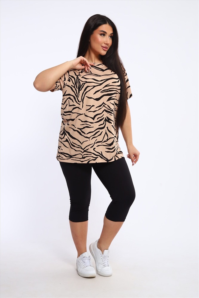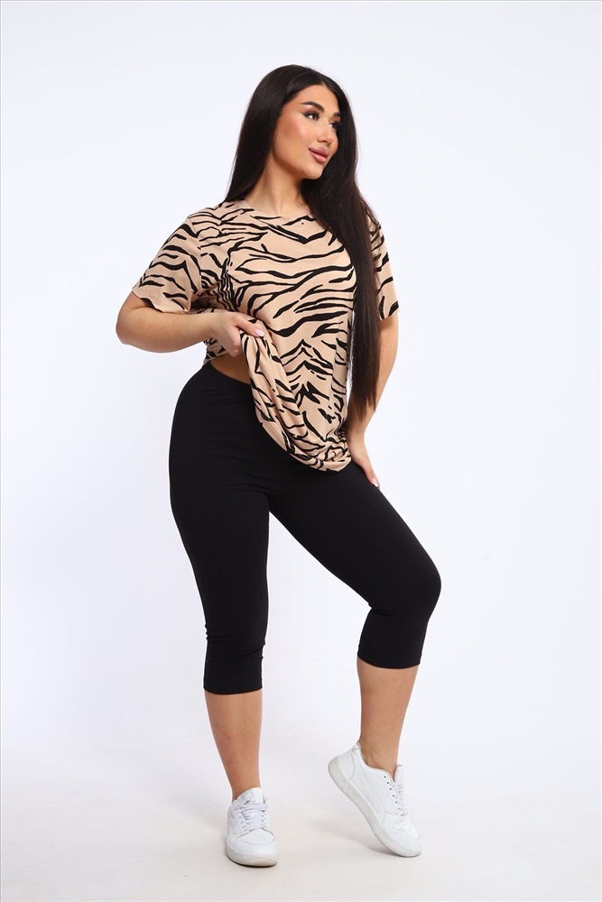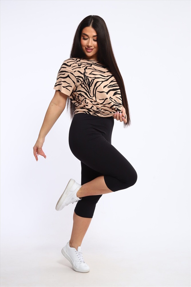 ID товара: 1113869 Состав: Верх 95% Вискоза, 5% Лайкра; низ 95% Хлопок, 5% Лайкра Сезон: Весна/Лето Длина: Средняя Фасон: Свободный Рукав: короткие Крой брючин: Облегающий Рисунок: Анималистичный Декоративные элементы: Принт Основная ткань: Полиэстер Стиль: повседневный Вид ткани: Кулирка с лайкрой, вискоза Страна бренда: Россия Страна производства: Россия Костюм из вискозы .Футболка оверсайс свободная, бриджи облегающие по ноге .Футболка с легким, свободным кроем обеспечивает комфорт и свободу движений, а дышащая вискоза нежно касается кожи, создавая приятные ощущения в течение всего дня Комментарии к товару