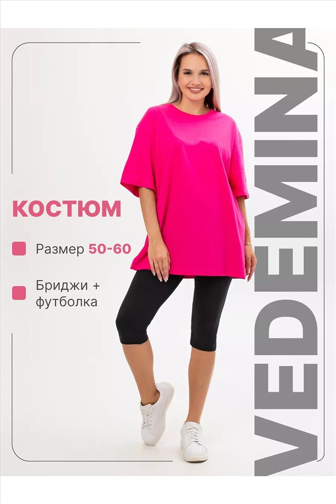 Страна производства: Россия Встречайте новинку от бренда Vedemina - модный и стильный спортивный костюм для девушек и женщин. Этот базовая одежда будет идеальным выбором для дома, прогулок, дачи и активного отдыха. Комплект удлиненная футболка и велосипедки подойдет и для повседневного стиля, и для занятий спортом. Независимо от вашего роста, вам обязательно подойдет этот хлопковый костюм. Он предлагается в разных размерах, включая большие для полных дам. Велосипедки обеспечивают комфортную посадку на любую фигуру и подходят как для бега, так и для походов. Наша двойка идеально подходит для дома как весной, так и летом. В летние месяцы комплект обеспечивает максимальный уют, благодаря использованию качественных материалов и продуманному дизайну. Весной, когда погода становится теплее, наши вещи позволяют комфортно и стильно проводить время в домашних условиях. Независимо от вашего предпочтения в активном отдыхе - танцы, физические нагрузки или просто прогулки на свежем воздухе, этот костюм создан для вас. Свободный крой и оверсайз делают его максимально комфортным и практичным для каждодневного использования. Однотонный цвет добавляет этому костюму стильности и индивидуальности. Независимо от времени года, этот костюм с бриджами - отличный выбор для уличных прогулок, отдыха, сна и даже для похода в роддом - ведь он идеально подойдет для будущих мам. Не упускайте возможность приобрести этот высококачественный и универсальный женский спортивный костюм от Vedemina. Он станет вашим надежным спутником на каждый день, даря комфорт и стиль в любую ситуацию. Отличный подарок бабушке, маме.