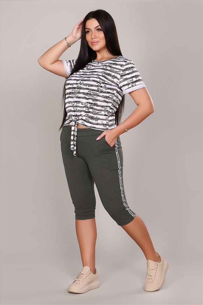 ID товара: 1112265 Состав: Хлопок 100% Сезон: Весна/Лето Длина: Средняя Фасон: Полуприлегающий Рукав: короткие Крой брючин: Облегающий Рисунок: Полоски Декоративные элементы: Принт Основная ткань: Хлопок Стиль: повседневный Вид ткани: Кулирка Страна бренда: Россия Страна производства: Россия Этот костюм действительно универсален! Он отлично подойдет для различных активностей, будь то пробежка, занятия домашними делами или прогулка с детьми. Кулирная гладь из хлопка обеспечивает комфорт и воздухопроницаемость, что особенно важно во время физической активности или прогуливаясь в жаркую погоду. Укороченная футболка с декоративным узлом добавляет стиль и оригинальность, а бриджи с карманами и эластичным поясом обеспечивают свободу движений и практичность. Такой комплект станет отличным выбором для активного образа жизни! Размер 44: футболка: длина:50 см; ширина:46 см. бриджи: длина внеш.шва:62 см; длина внут.шва:41 см;ширина по бедрам:47 см. Размер 46: футболка: длина:50 см; ширина:48 см. бриджи: длина внеш.шва:62 см; длина внут.шва:41 см;ширина по бедрам :47 см. Размер 48: футболка: длина:54 см; ширина:51 см. бриджи: длина внеш.шва:63 см; длина внут.шва:41 см;ширина по бедрам :48 см. Размер 50: футболка: длина:54 см; ширина:51 см. бриджи: длина внеш.шва:63 см; длина внут.шва:41 см; ширина по бедрам:48 см. Размер 52: футболка: длина:56 см; ширина:53 см. бриджи: длина внеш.шва:62 см; длина внут.шва:41 см; ширина по бедрам:48 см. Размер 54: футболка: длина:56 см; ширина:55 см. бриджи: длина внеш.шва:62 см; длина внут.шва:41 см; ширина по бедрам:49 см. Комментарии к товару
