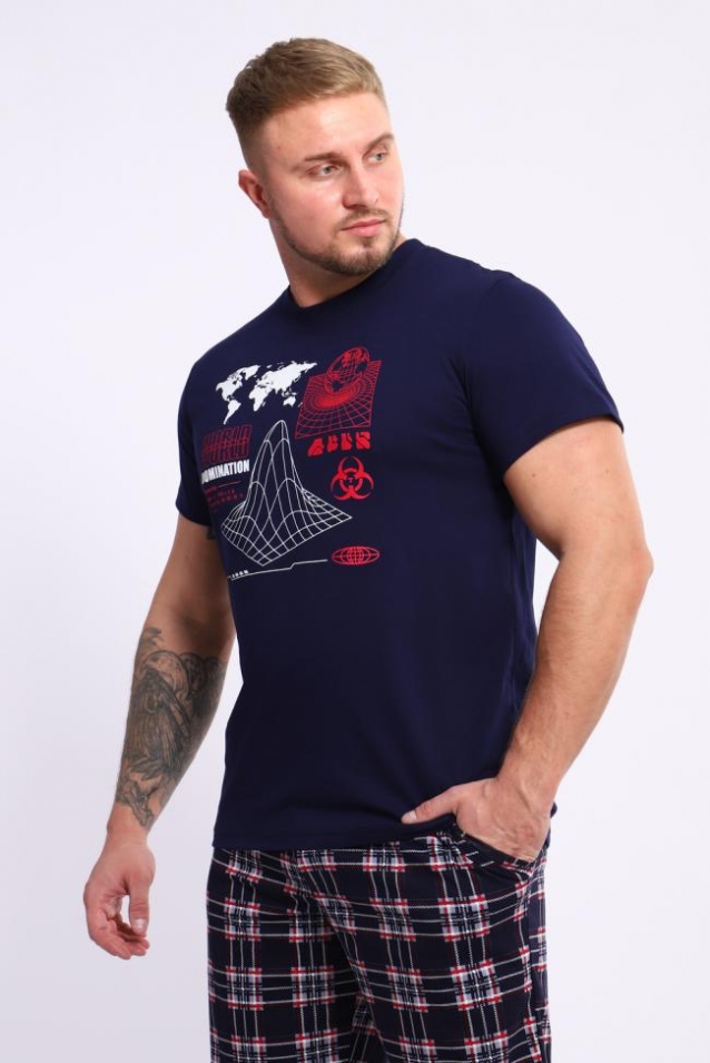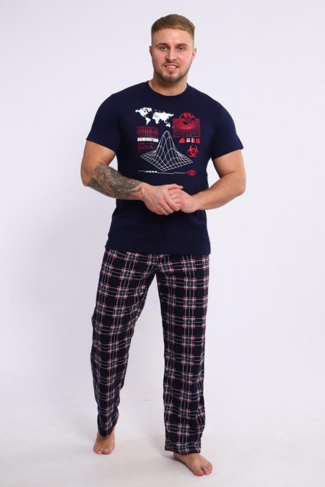 Мужской костюм, который идеально подойдет на любой сезон. Этот костюм изготовлен из высококачественного трикотажного материала, который обеспечивает комфорт и свободу движений. Костюм выполнен из 100% хлопка. Костюм состоит из двух частей - футболка и штанов. Футболка выполнена в стильном темно-синем цвете, который придает образу особую элегантность. Штаны имеют удобный крой, который подходит для любой фигуры. Костюм доступен в большом размерном ряду. Этот костюм идеально подходит для дома и отдыха.