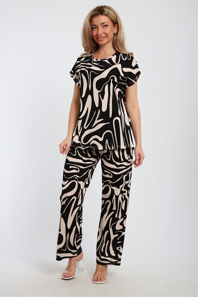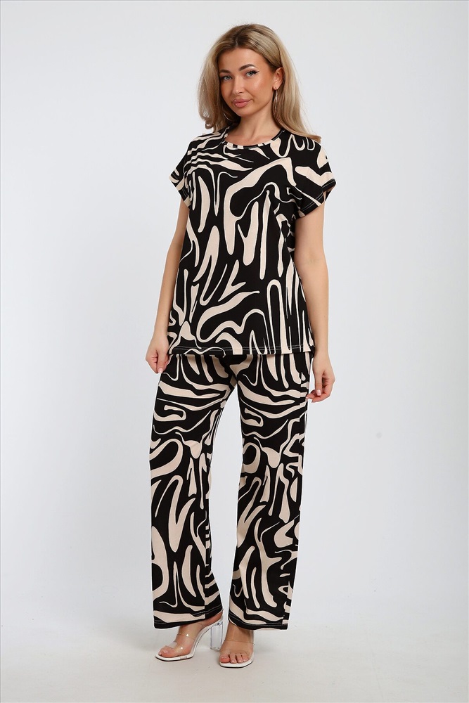 ID товара: 1131904 Состав: Хлопок 100% Сезон: Весна/Лето Длина: Полная Фасон: Свободный Рукав: Короткие Крой брючин: Прямой Рисунок: Абстракция Декоративные элементы: Принт Основная ткань: Хлопок Стиль: Повседневный Вид ткани: Кулирка Страна бренда: Россия Страна производства: Россия Костюм женский выполнен из кулирки 100% хлопок, состоит из футболки со спущенным плечом и брюк. Брюки свободного кроя на поясе, горловина футболки обработана узким кантом. Костюм очень комфортный, удобный, идеально подойдет как для прогулок, так и для дома и отдыха. Комментарии к товару