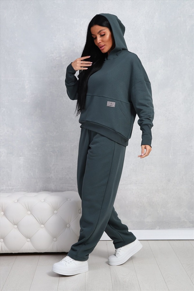 ID товара: 1205534 Состав: 88% Хлопок; 12% Полиэстер Сезон: Демисезон Длина: Полная Фасон: Свободный Рукав: Длинные Крой брючин: Прямой Тип карманов: Кенгуру Декоративные элементы: С капюшоном Основная ткань: Хлопок Стиль: Спортивный Вид ткани: Футер 3-х нитка Страна бренда: Россия Страна производства: Россия Костюм женский трикотажный: толстовка с капюшоном, карман Кенгуру, спинка немного длиннее полочки, спущенное плечо, трендовый высокий манжет у рукавов; брюки бананы на широком эластичном поясе, с боковыми карманами. Комментарии к товару