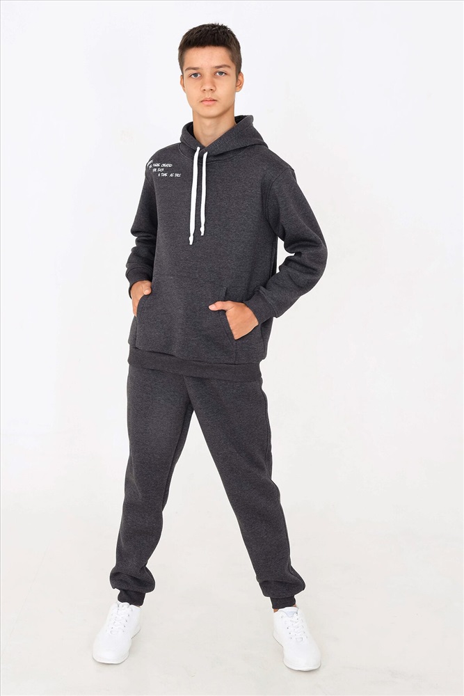 ID товара: 874914 Состав: 70% Хлопок, 30% Полиэстер Сезон: Демисезон Длина: Средняя Фасон: Прямой Рукав: длинные Крой брючин: Зауженный Основная ткань: Футер 3-х нитка с начесом Стиль: Повседневный Страна бренда: Россия Страна производства: Россия Спортивный костюм однотонный для девочек и мальчиков из футера 3-х нитки с начесом. Ткань нежная, очень мягкая, теплая. Сезон 2022-2023. Удобный и комфортный костюм с брюками средней посадки. Худи прямого силуэта с карманом кенгуру и капюшоном. Низ толстовки и рукава на эластичных манжетах. На груди принт контрастного цвета. Брюки с манжетами по низу. Карманы на джоггерах с отрезным бочком. Над манжетом брюк в цвете хаки маленький принт. Этот спортивный костюм детский займет особое место в вашем гардеробе. Классический, лаконичный, эффектный - это то, что никогда не выйдет из топов сезона. Благодаря натуральному составу ткани, прекрасно подходит для прохладной погоды. Выбирая этот базовый спортивный костюм, вы получаете универсальный стильный худи оверсайз, который можно сочетать с джинсами, юбками, а так же удобные, стильные брюки. Все костюмы бренда Modestreet сертифицированы и произведены на современном производстве в России. Бренд Модестрит создает одежду, в которой удобно отдыхать и работать, заниматься спортом, отправиться в путешествие или просто использовать как домашнюю одежду. Желаем приятных покупок с брендом Modestreet! Комментарии к товару