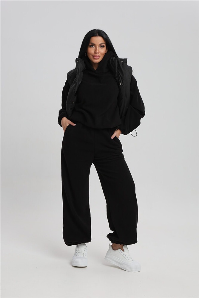 ID товара: 1211456 Состав: 100% Полиэстер Сезон: Осень/Зима Длина: Полная Фасон: Свободный Рукав: Длинные Крой брючин: Прямой Тип карманов: В шве Декоративные элементы: С капюшоном Основная ткань: Полиэстер Стиль: Спортивный Вид ткани: Флис Страна бренда: Россия Страна производства: Россия Этот костюм идеально впишется в ваш гардероб для активного отдыха и повседневных прогулок. Все элементы продукта выполнены из 100% полиэстера, что обеспечивает легкость и комфорт в носке. Материал без утеплителя и подкладки позволяет чувствовать себя свободно даже при длительном ношении. Изготовленный из флиса, он мягок на ощупь и приятен к телу, а капюшон добавляет дополнительную защиту от ветра. Модель без застежки легко надевается и снимается, что особенно удобно для будущих мам. Быстросохнущая ткань подходит для активностей на свежем воздухе. Высоко оценимая эластичность материала дарит свободу движений, сохраняя форму изделия после многочисленных стирок. Свободный крой делает его комфортным варианта для высоких женщин или обладательниц больших размеров. Никакие узоры здесь не отвлекают внимание от основного вашего личного стиля и образа жизни. Худи женское оверсайз с капюшоном и мягкой резинкой на рукавах, капюшон с подкладкой из хлопка, по низу худи шляпная резинка с фиксатором, брюки женские с высокой посадкой на резинке прямого кроя с прорезными карманами по низу брюк шляпная резинка с фиксатором. Комментарии к товару