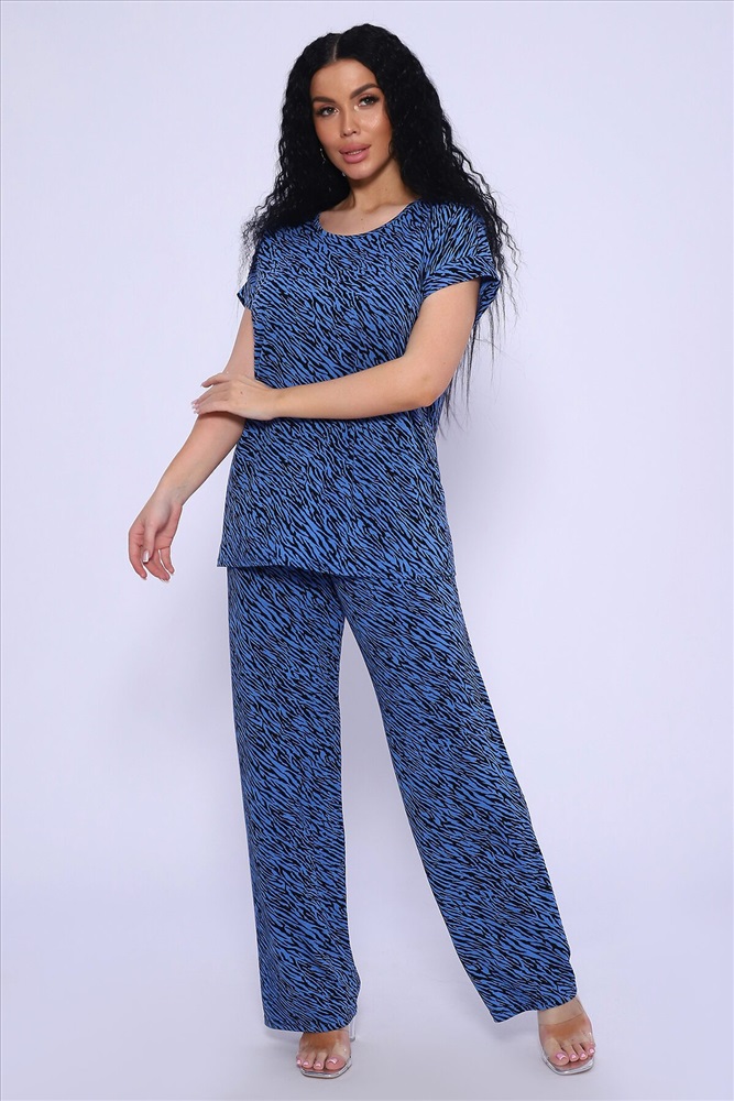 ID товара: 982534 Состав: 95% Вискоза, 5% Лайкра Сезон: Весна/Лето Длина: Полная Фасон: Свободный Рукав: короткие Крой брючин: Прямой Рисунок: Анималистичный Декоративные элементы: Принт Стиль: повседневный Вид ткани: Вискоза Страна бренда: Россия Страна производства: Россия Модель свободного силуэта - легкий, яркий брючный костюм украсит как повседневный, так и офисный гардероб. Блузка полуприлегающего силуэта со спущенным рукавом на манжете, не сковывает движений, а широкие брюки палаццо на эластичном поясе-резинке так же свободны на фигуре. Костюм прекрасно будет смотреться на девушках и женщинах любой комплекции, не полнит, при желании можно подчеркнуть талию любым ремешком. Модель изготовлена из дышащей трикотажной ткани вискоза, которая очень приятна к телу, не мнётся, универсальна и актуальна! Комментарии к товару