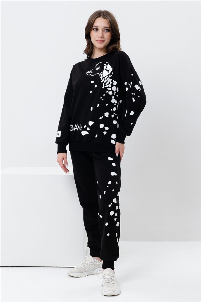 ID товара: 907573 Состав: Хлопок 72%, Полиэстер 23%, Лайкра 5% Сезон: Весна/Лето Длина: Средняя Фасон: Свободный крой Рукав: длинные Крой брючин: Зауженный Основная ткань: Хлопок Стиль: Повседневный Вид ткани: Футер с лайкрой 2-х нитка Страна бренда: Россия Страна производства: Россия Женский костюм с брюками и толстовкой. Материал футер 2-х нитка с лайкрой. По все длине брюк и толстовки печать. Толстовка с манжетами, по низу брюк резинка. Комментарии к товару