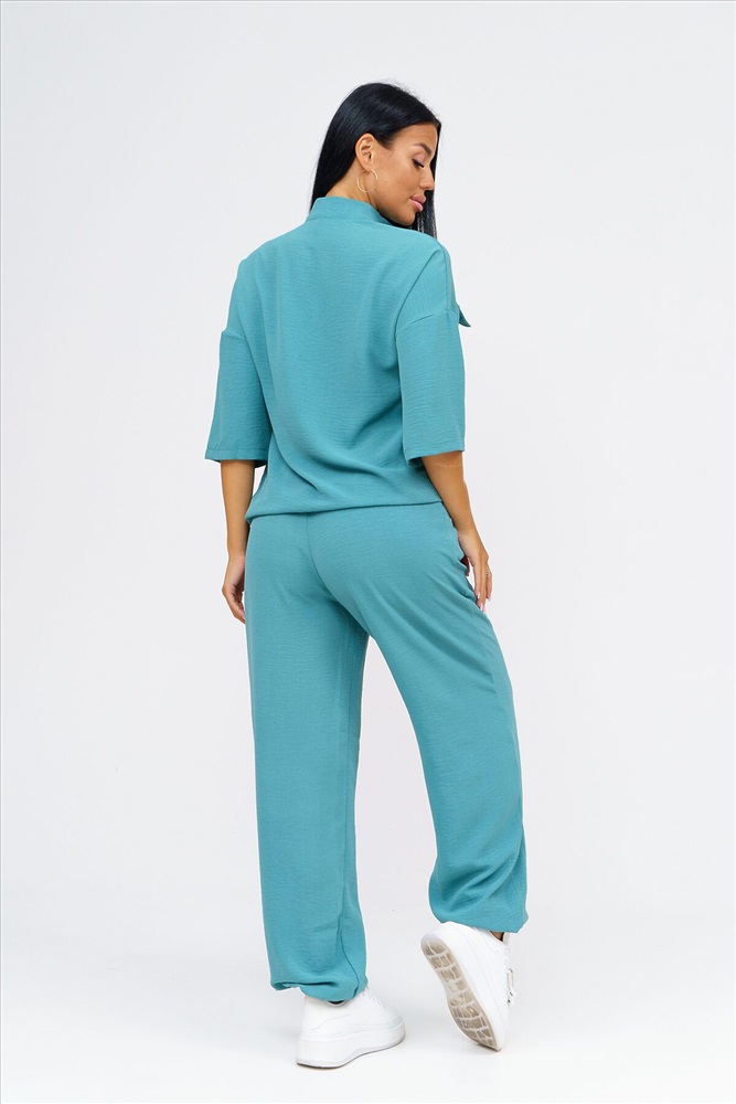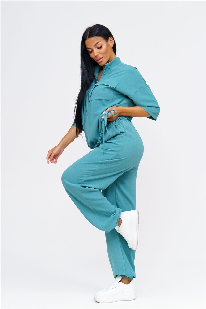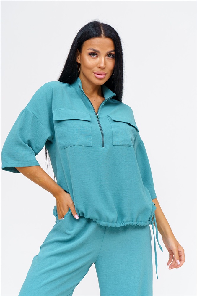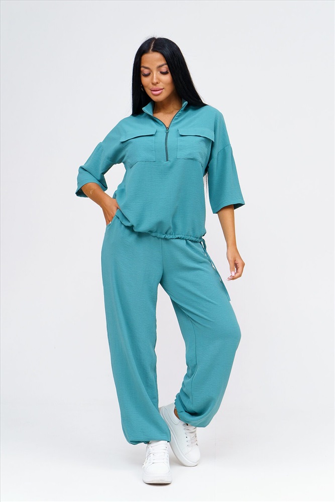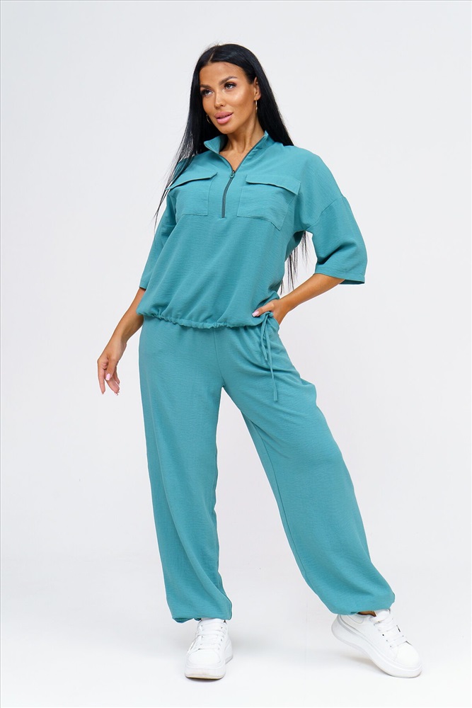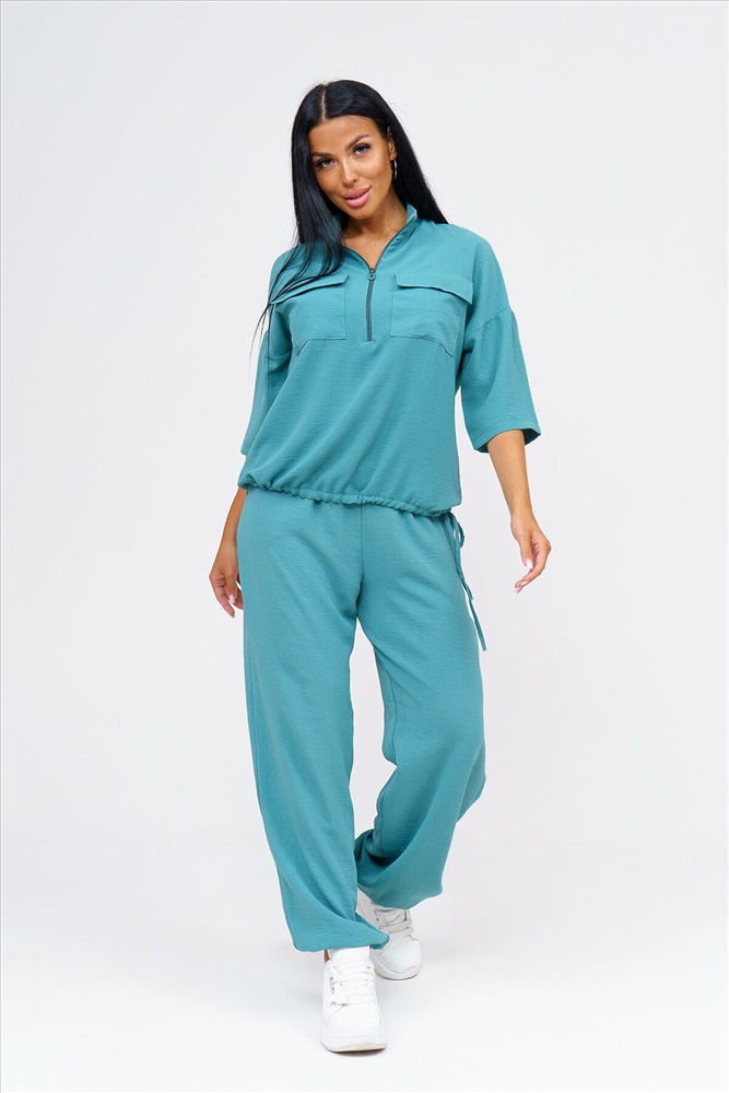 ID товара: 1064445 Состав: 50% Полиэстер, 50% Хлопок Сезон: Демисезон Длина: Полная Фасон: Свободный Рукав: 3/4 Вид застежки: Молния Крой брючин: Прямой Тип карманов: Накладные, с отрезным бочком Основная ткань: Полиэстер Стиль: повседневный Вид ткани: Сингапур Страна бренда: Россия Страна производства: Россия Встречайте безупречное сочетание элегантности и комфорта в новом костюме женском брючном. Стильный комплект идеально подчёркивает вашу индивидуальность и подходит для разнообразных случаев, будь то работа, деловая встреча или романтический вечер. Исполненный в чарующем бирюзовом цвете, он придаёт образу свежести и лёгкости, акцентируя внимание на вашем изысканном вкусе. Брючный костюм женский летний создан из мягкой, дышащей ткани, что обеспечивает комфорт даже в жаркую погоду. Превосходный крой и продуманные детали делают его идеальным выбором для тех, кто ценит качество и утончённый стиль. Дизайнеры предусмотрели все особенности конструктивного покроя, чтобы костюм женский классический садился по фигуре, подчёркивая её достоинства и грациозно скрывая недостатки. Брюки имеют удобную посадку и идеально сочетаются с блузками и топами, что позволяет вам легко создавать разнообразные образы на каждый день. Туника, входящая в комплект, обладает элегантным фасоном и дополнен изысканными деталями. Брючный костюм женский позволяет вам выглядеть эффектно и стильно, независимо от обстоятельств. Костюм женский больших размеров создан с учётом всех модных тенденций и актуальных требований к ношению: он легок и приятен к телу, не стесняет движений и при этом сохраняет форму в течение всего дня. Такого комплекта одежды женской летней трудно найти аналог, ведь он идеально подходит как для дневных офисных будней, так и для вечерних выходов. Комментарии к товару