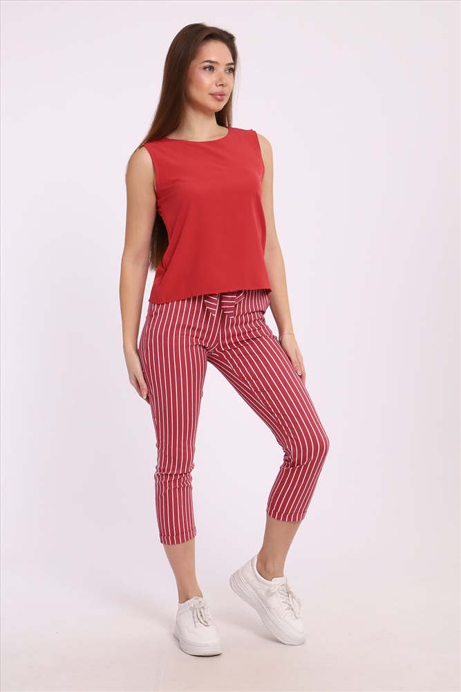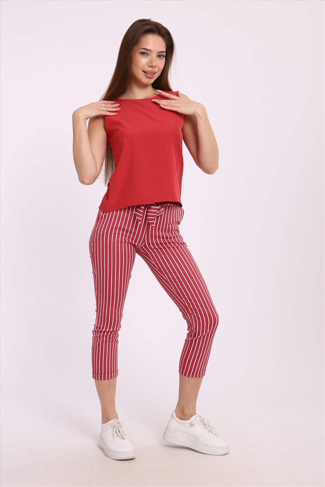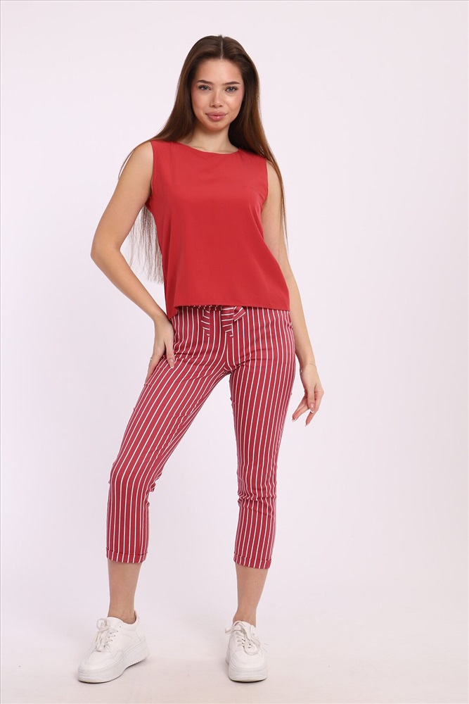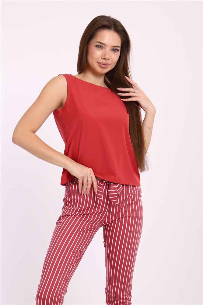 Стильные полосатые брюки прекрасно подходят как для офисного стиля, так и для вечерних прогулок по городу. Вертикальные полоски визуально вытягивают силуэт, добавляя вам высоты и стройности. Мы предлагаем брюки, выполненные из высококачественных материалов, которые гарантируют комфорт и долговечность. Эти брючные костюмы подойдут для любого времени года, обеспечивая нужный уровень удобства и элегантности. Однотонный топ универсальность и классика Наш однотонный топ, входящий в комплект, создан для того, чтобы гармонично дополнять полосатые брюки. Этот элемент гардероба выполнен в классическом дизайне, что позволяет легко сочетать его как с другими частями вашего гардероба, так и с различными аксессуарами. Материал топа мягкий и приятный к телу, он отлично сохраняет форму и не теряет цвет после множества стирок. Преимущества женского брючного костюма с полосатыми брюками Многофункциональность: Брючный костюм идеально подходит для создания как делового, так и повседневного образа. Универсальность: Полосатые брюки и классический топ легко комбинируются с другими элементами одежды. Качество: Высококачественные материалы гарантируют долгий срок службы и идеальную посадку по фигуре. Актуальность: Этот костюм соответствует последним модным тенденциям и будет актуален в любом сезоне.