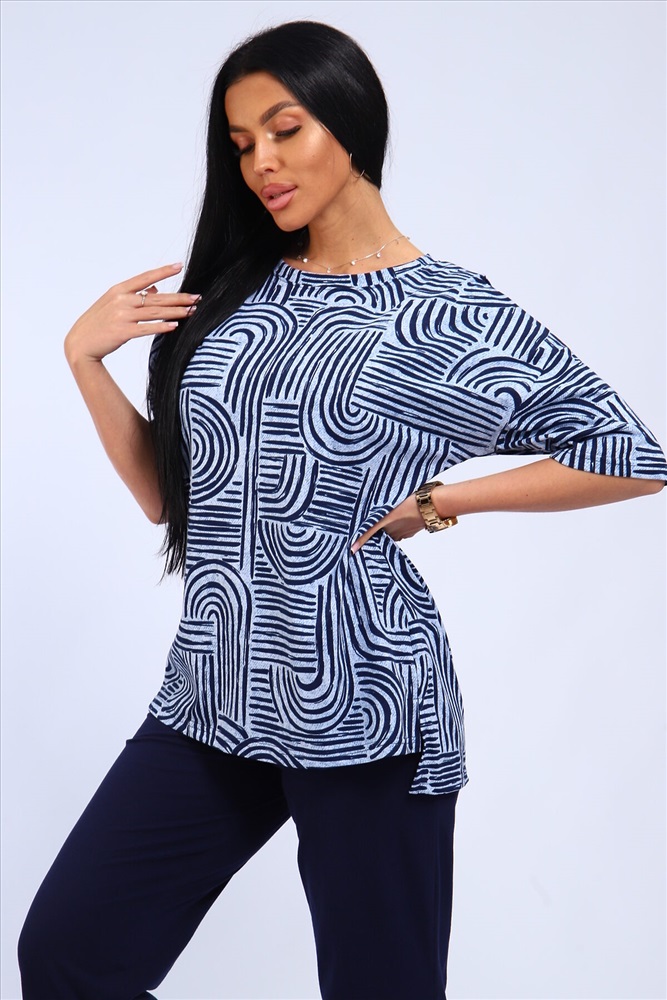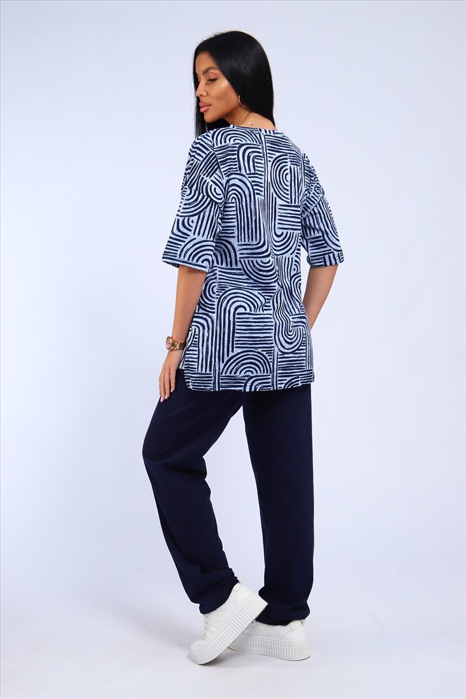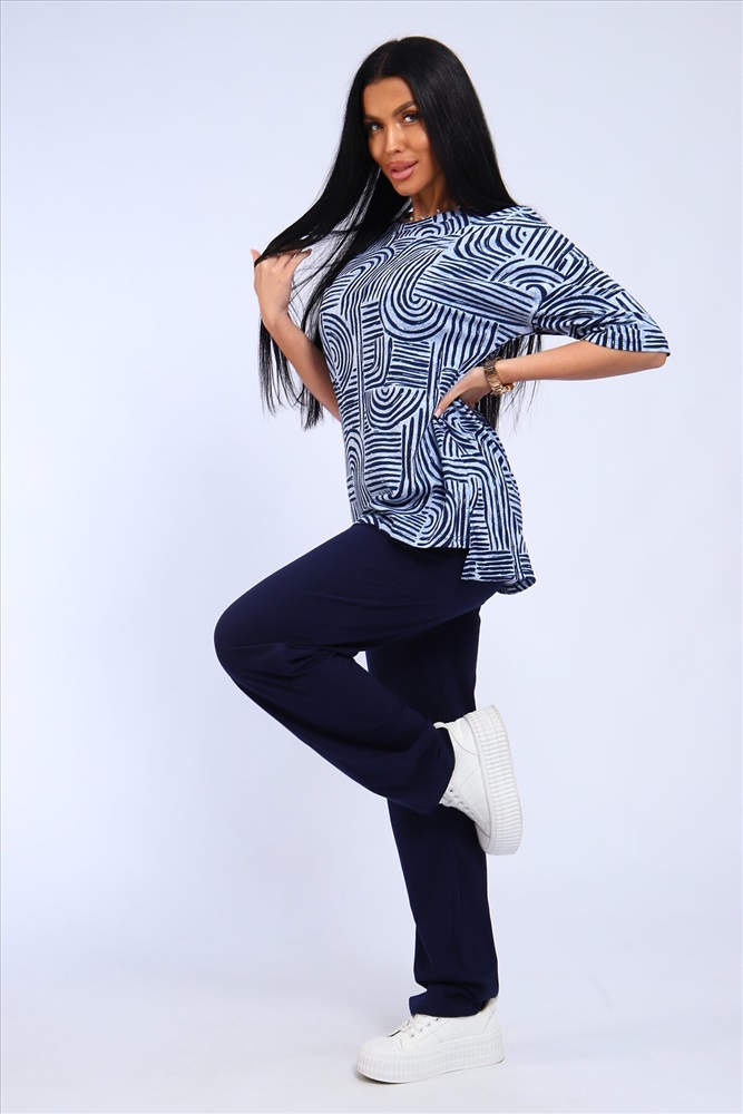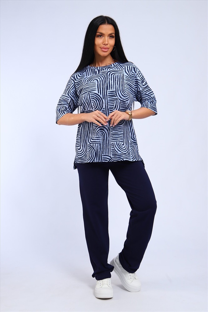 ID товара: 1214307 Состав: 100% Хлопок Сезон: Демисезон Длина: Полная Фасон: Полуприлегающий Рукав: короткие Крой брючин: Прямой Рисунок: Узор Декоративные элементы: Принт Основная ткань: Хлопок Стиль: повседневный Вид ткани: Кулирка Страна бренда: Россия Страна производства: Россия Костюм женский футболка и брюки. Футболка полуприлегающего силуэта. Рукав короткий на спущенном плече. Разрезы в боковых швах. Брюки прямого кроя. Комментарии к товару