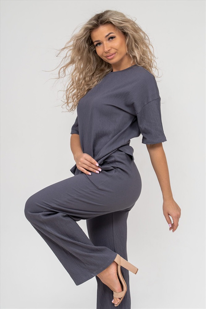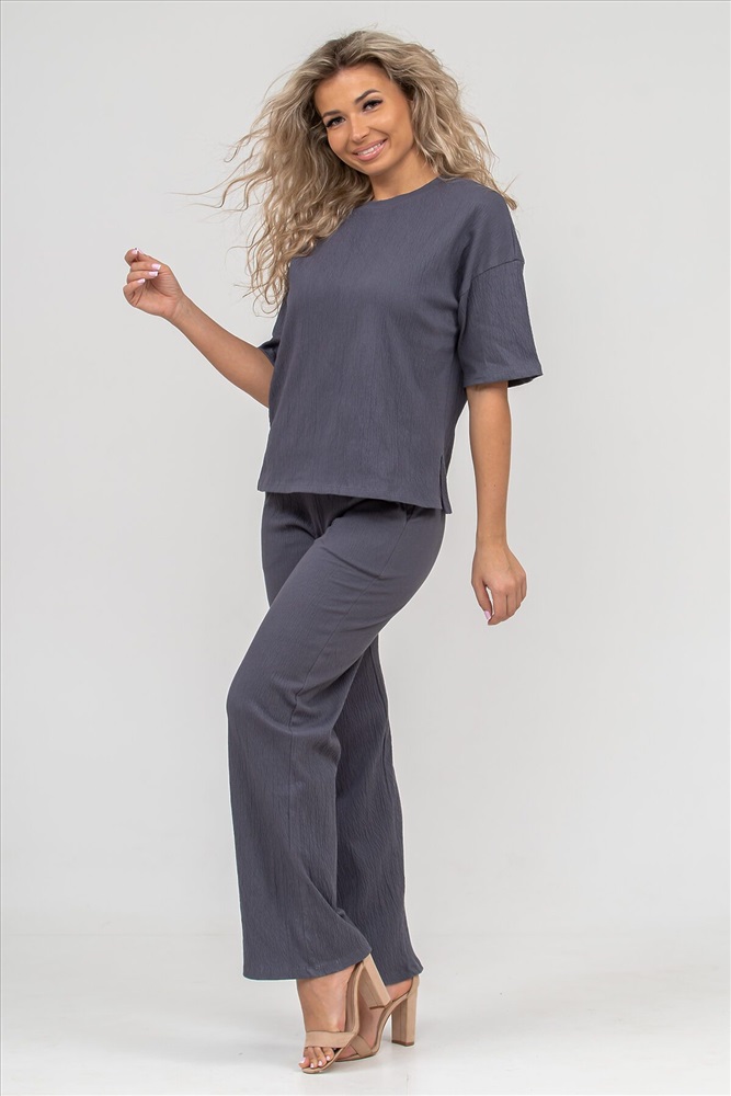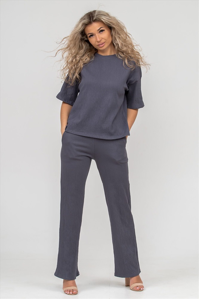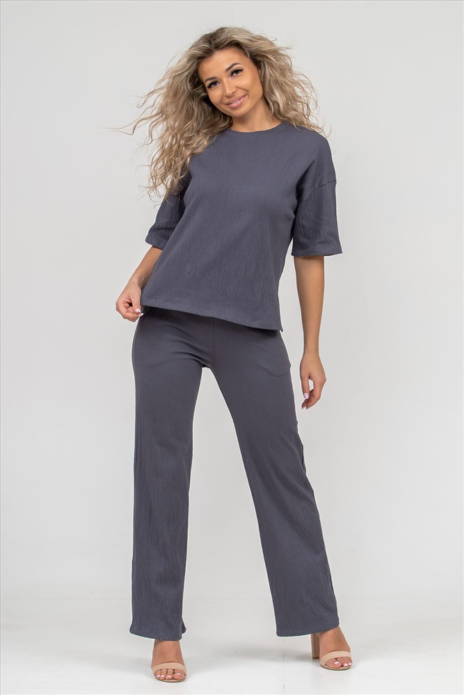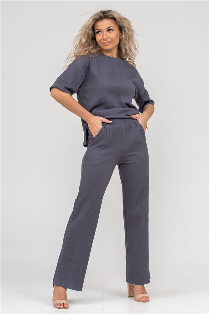 ID товара: 904144 Состав: 88% Хлопок; 10% Полиэстер; 2% Лайкра Сезон: Весна/Лето Длина: Средняя Фасон: Свободный крой Рукав: короткие Крой брючин: Прямой Основная ткань: Хлопок Стиль: Повседневный Вид ткани: Жатка Страна бренда: Россия Страна производства: Россия Модный стильный костюм - идеальное решение для тех, кто ищет лёгкую и красивую одежду на каждый день. Костюм, футболка и брюки, выполнен из кулирки гипе жатка компакт. Жатка - это ткань с мятой структурой, декоративными заломами и складками. Имеет много положительных качеств: хорошо тянется, упругая, красивая текстура, неприхотливая в уходе, прочная, износостойкая, не мнётся, не нуждается в глажке и приятная к телу. Футболка выполнена со спущенным рукавом, отстроченной обтачкой по горловине и двумя небольшими разрезами по бокам. На брюках имеется два вместительных боковых кармана и пояс, обработанный на специализированной поясной машине. Данная модель костюма очень удобна в качестве повседневной одежды, а универсальный фасон хорошо скроет недостатки и подчеркнет достоинства фигуры. Свободный крой комплекта двойки не сковывает движения, что делает его очень удобным в носке, резинка не перекручивается, а высокая посадка брюк - палаццо даёт ощущение комфорта. Такой костюм можно использовать как в качестве костюма для фитнеса, так и как вариант домашнего костюма, в нем также можно поехать на дачу или отправиться на вечернюю прогулку. Однотонный дизайн летнего брючного костюма без принта, надписей и декоративных элементов будет гармонировать с любым стилем одежды, а дополнить образ с модным костюмчиком можно любимыми аксессуарами и украшениями. Свободную футболку и брючки можно носить как вместе, так и отдельно. Футболку с коротким рукавом и разрезами по бокам можно легко сочетать с джинсами, юбками и шортами. К брюкам с карманами можно также подобрать любой верх. Образ с костюмом можно дополнить кроссовками, кедами или туфлями. Мягкий, прочный, хлопковый материал не дает усадку, не теряет форму после стирки и не линяет, его можно стирать в режиме бережной стирки при 30 градусах. Также данный трикотажный костюм не скатывается и не вытягивается за счет небольшого количества полиэстера в составе. Такой однотонный костюм с широкими брюками подойдет для разной возрастной категории. Он идеально подойдет для беременных и мам с детьми. Хорошо сядет на высоких и невысоких представительницах прекрасного пола всех возрастов. Такой универсальный прогулочный женский костюм станет отличным подарочным вариантом, его можно подарить маме, дочери, жене, бабушке, подруге или порадовать себя любимую даже без повода. Наш костюм благодаря своей практичности и лаконичному дизайну будет служить Вам долгие годы. Ориентируясь по таблице замеров, обратите внимание, что замеры длины р Комментарии к товару
