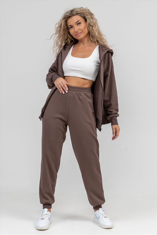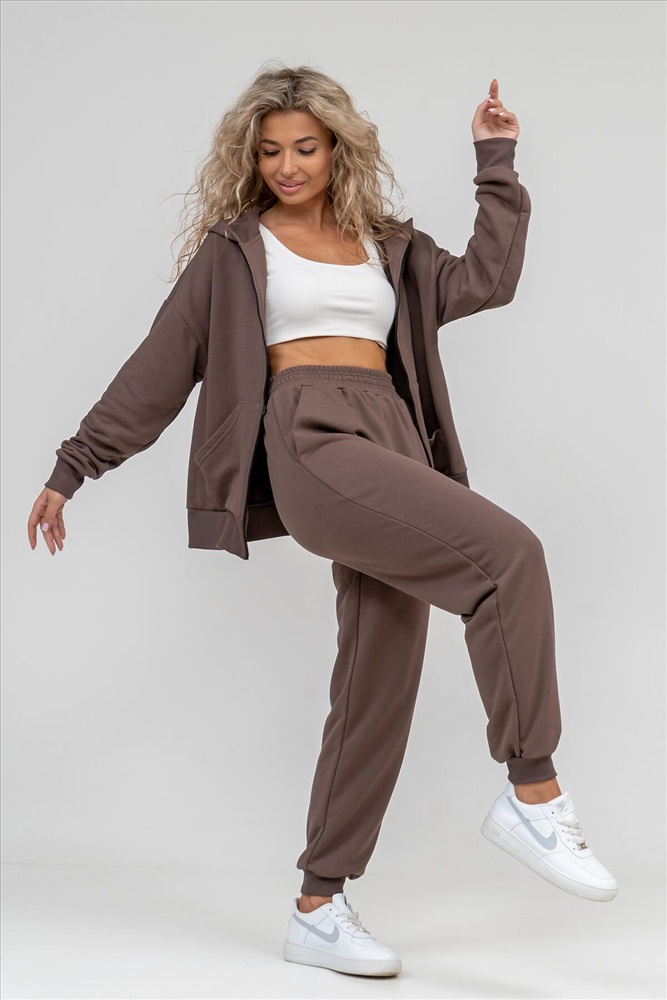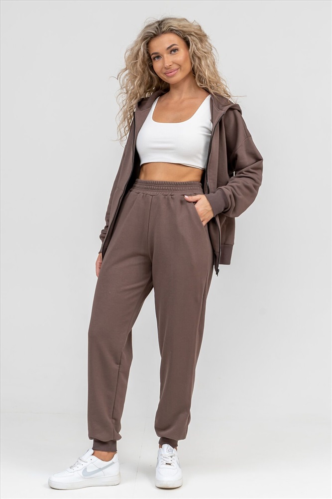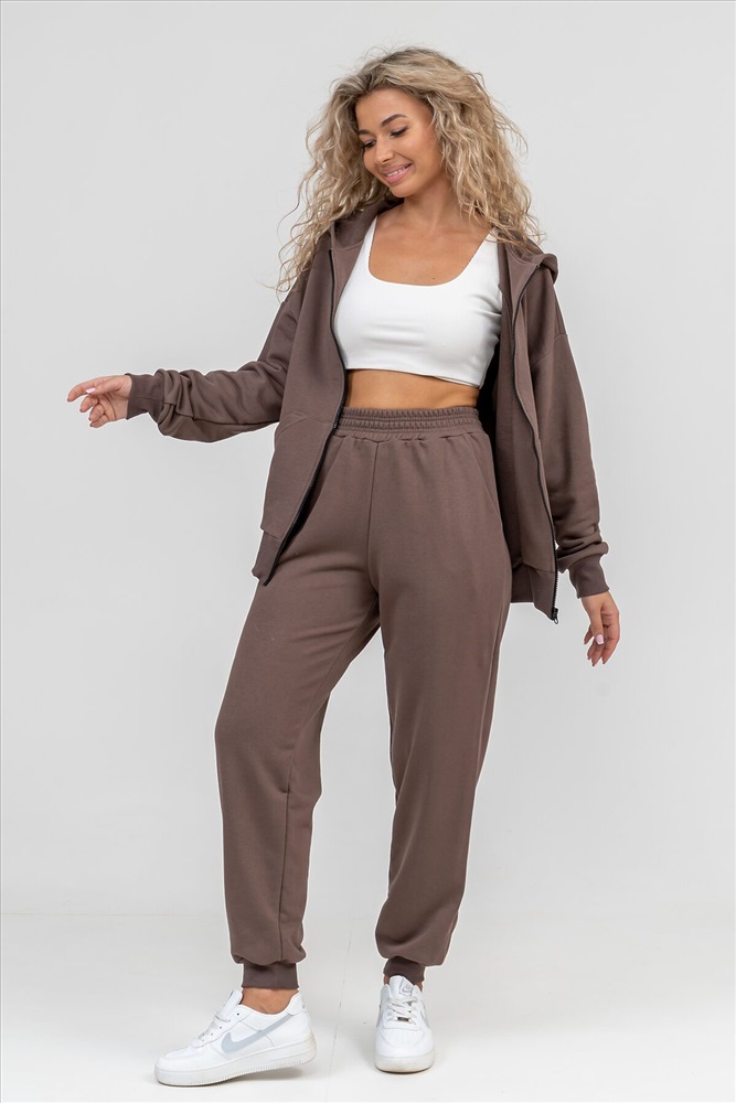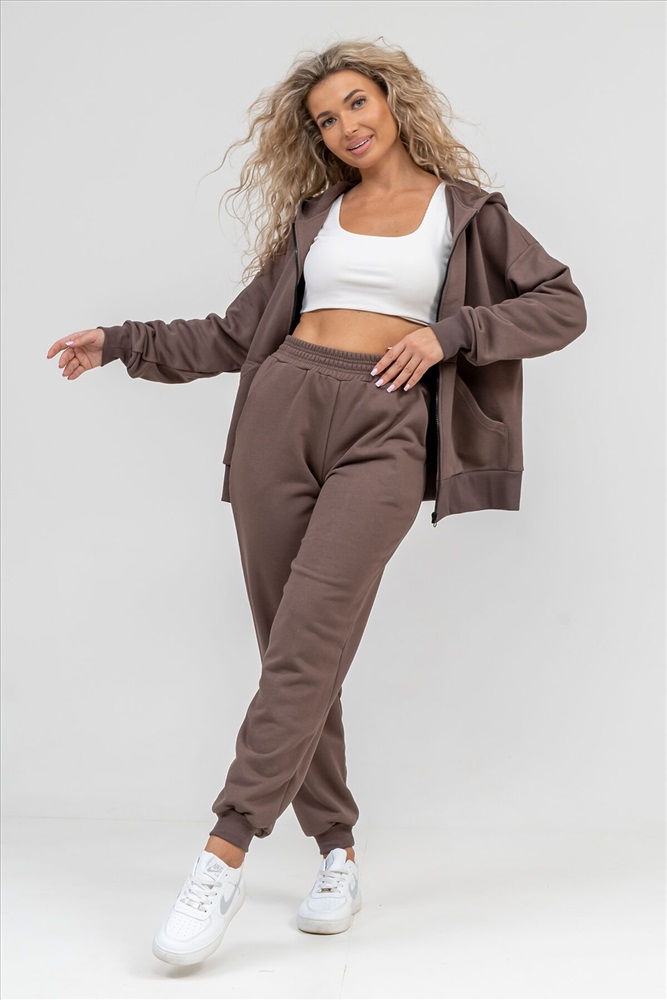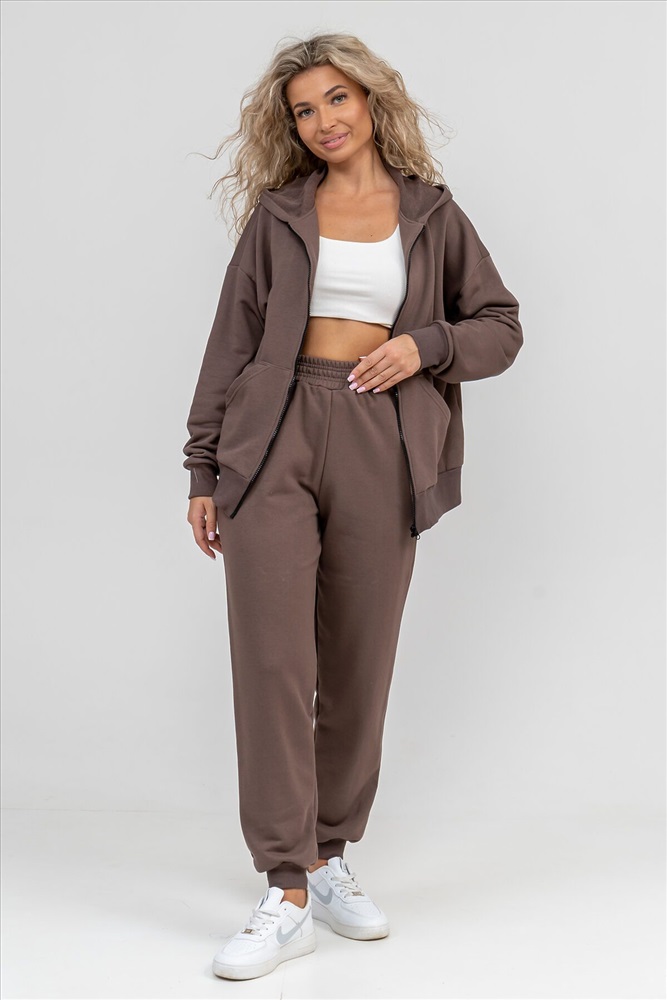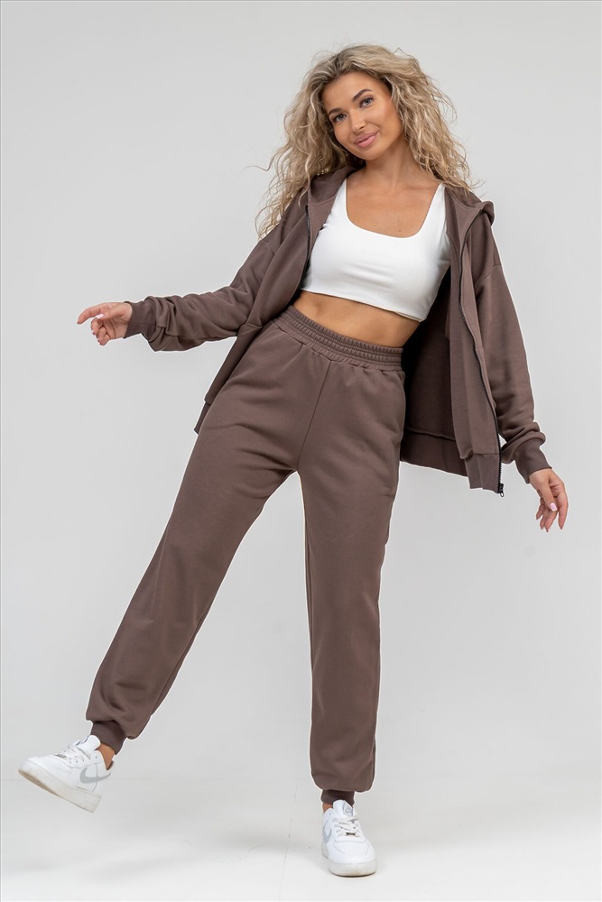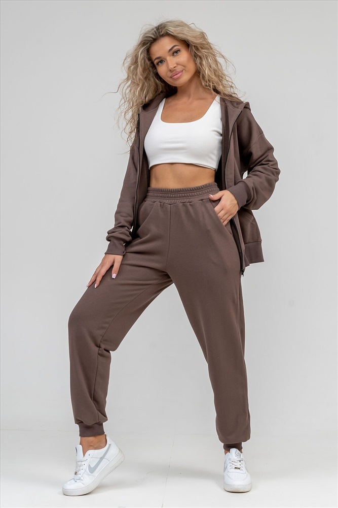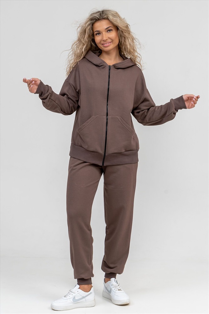 ID товара: 926595 Состав: 100% Хлопок Сезон: Весна/Лето Длина: Средняя Фасон: Свободный крой Рукав: длинные Вид застежки: Молния Крой брючин: Зауженный Основная ткань: Хлопок Стиль: Повседневный Вид ткани: Футер 3-х нитка Страна бренда: Россия Страна производства: Россия Модный женский костюм выполнен из качественного футера 3-нитки петли, который обладает необыкновенной мягкостью, натуральностью, гипоаллергенностью и формоустойчивостью (при правильном уходе и стирке 30-40 С), и обеспечивает максимальное удобство и комфорт при носке. Костюм состоит из современной zip hoodi свободного силуэта, которую дополняет: рукав с актуальной сейчас спущенной линией плеча, удобные карманы кенгуру и манжеты. Молния выполнена из качественных пластиковых зубьев закрепленных на прочной тесьме, что обеспечивает плавное скольжение бегунка. А также удобные брюки, которые дополнены вместительными боковыми карманами, поясом выполненным на специализированной поясной машине и манжетами выполненными из качественного кашкорсе. Костюм двойка прекрасно подходит для вечерних и повседневных образов, для прогулок и занятий спортом, а также в качестве женского костюма для дома. Костюм такого плана не сковывает движения, поэтому идеально подойдёт для беременных и мам с детьми. Наши костюмы согреют Вас на прогулке и сделают комфортным путешествие. А большой и тёплый капюшон защитит Вас от непогоды. Ориентируясь по таблице замеров, обратите внимание, что замеры длины рукава проводились от точки основания шеи. Комментарии к товару