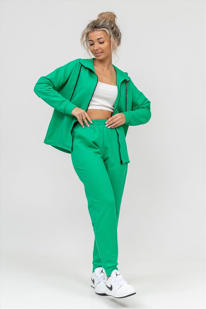 ID товара: 939850 Состав: 72% Хлопок; 20% Полиэстер; 8% Лайкра Сезон: Весна/Лето Длина: Средняя Фасон: Свободный крой Рукав: длинные Вид застежки: Молния Крой брючин: Зауженный Основная ткань: Хлопок Стиль: Повседневный Вид ткани: Футер 2-х нитка Страна бренда: Россия Страна производства: Россия Женский костюм выполнен из футера 2-х нитки высокого качества с хлопком и небольшим добавлением полиэстера и лайкры, что позволяет изделию не скатываться и оставлять идеальный внешний вид на долгое время. Костюм состоит из толстовки и брюк. Толстовка прямая, на молнии, с двойным капюшоном - стойкой и двумя накладными вместительными карманами. Манжеты брюк и толстовки выполнены из основного материала, а пояс на специализированной поясной машине, что делает швы крепкими, ровными и качественными. Костюм такого плана представлен в широкой размерной сетке, что позволяет выбрать его как девушке, так и женщине. Однотонный костюм модных расцветок будет удачным выбором для поездок в отпуск, на пикник, для школы, для активного отдыха и прогулок по городу. Костюм с брюками - это настоящая находка для тех, кто ценит свою индивидуальность. Ориентируясь по таблице замеров, обратите внимание, что замеры длины рукава проводились от точки основания шеи. Комментарии к товару