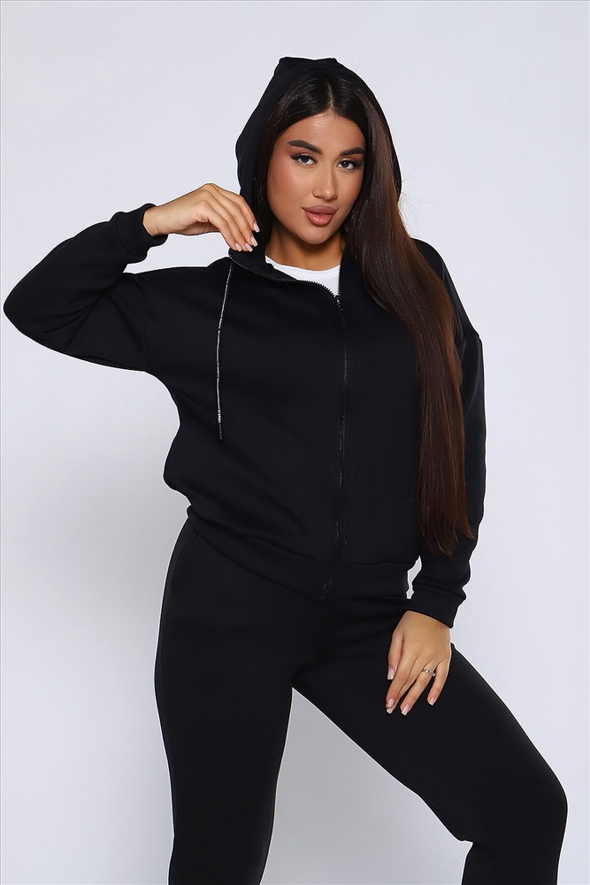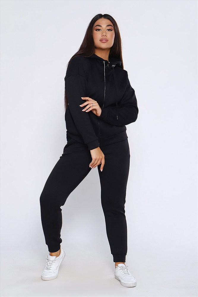 ID товара: 952569 Состав: 65% Полиэстер; 30% Вискоза; 5% Лайкра Сезон: Демисезон Длина: Средняя Фасон: Свободный крой Рукав: длинные Вид застежки: Молния Крой брючин: Зауженный Основная ткань: Полиэстер Стиль: Повседневный Вид ткани: Трикотаж на меху Страна бренда: Россия Страна производства: Россия Модный утеплённый костюм выполнен из материала нового поколения футер найк - спорт. Это мягкое и эластичное полотно, утеплённое мелковорсным мехом, цвет меха в тон основного цвета. Ворс направленный 3 мм, мягкий и не блестящий. Полотно эластичное и очень приятное на ощупь с обеих сторон. Благодаря составу не вытягивается, не образует катышки, не сыпется и не требует особого ухода. Костюм такого плана - это модная и стильная вещь, идеально подходящая для активного образа жизни, отдыха и для повседневной носки. Модель выполнена из специально разработанной для спортивных занятий ткани, которая отводит влагу, позволяет коже дышать и настолько эластична, что тянется в 4 - х направлениях. Поэтому костюм идеален для зимних видов спорта, например, катания на коньках, сноуборде или лыжах в холодное время, а также для скандинавской ходьбы. Костюм состоит из толстовки и брюк. Толстовка с манжетом, на молнии, с капюшоном - стойкой и двумя боковыми вместительными карманами. Брюки полуприлегающие с боковыми вместительными карманами. Манжеты брюк и толстовки выполнены из основного материала, а пояс на специализированной поясной машине, что делает швы крепкими, ровными и качественными. Костюм такого плана представлен в широкой размерной сетке, что позволяет выбрать его как девушке, так и женщине. Однотонный костюм модных расцветок будет удачным выбором для поездок в отпуск, на пикник, для школы, для активного отдыха и прогулок по городу. Костюм с брюками - это настоящая находка для тех, кто ценит свою индивидуальность. Важно! Возможна усадка при первичной стирке до 5%. Стирать при температуре не выше 30С, отжим 800 оборотов и никакой сушки в сушилке! Ориентируясь по таблице замеров, обратите внимание, что замеры длины рукава проводились от точки основания шеи. Комментарии к товару