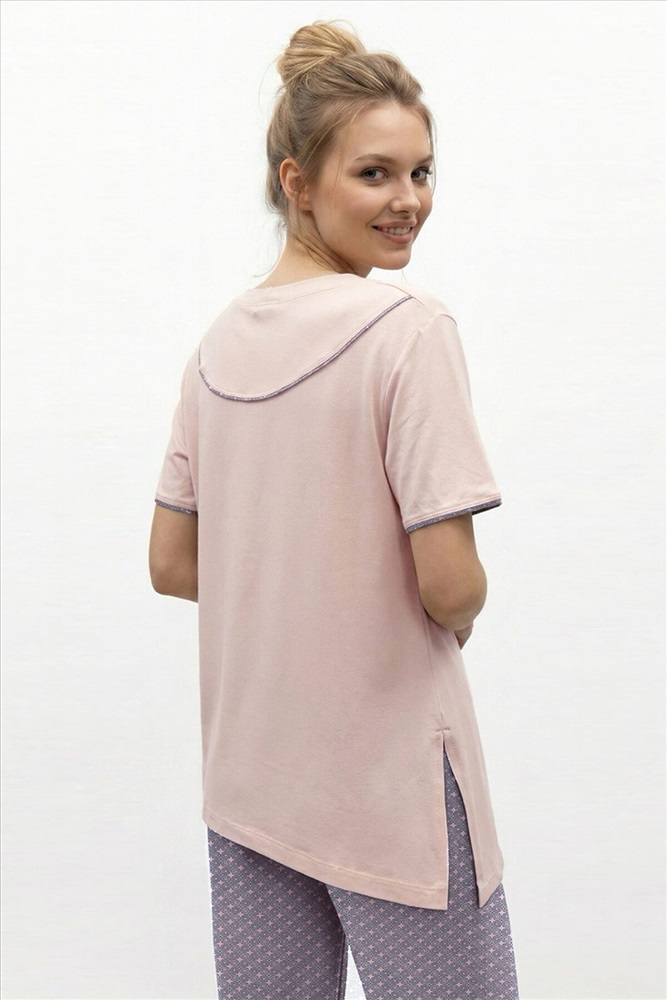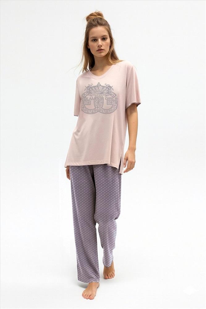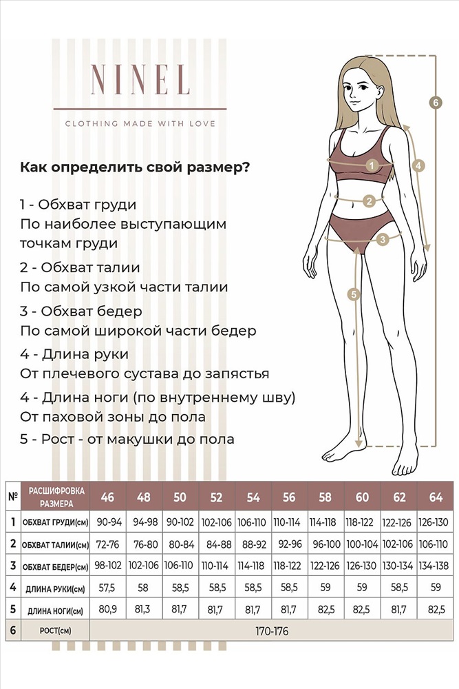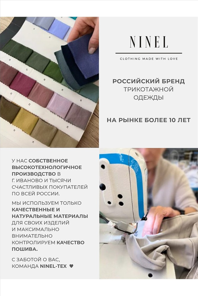 ID товара: 1231833 Состав: 95%вискоза 5%эластан Сезон: Весна/Лето Длина: Полная Фасон: Свободный Вид ткани: Вискоза Страна бренда: Россия Страна производства: Россия Подарите себе истинное наслаждение комфортом и элегантностью с женским домашним костюмом от бренда NINEL. Этот комплект, состоящий из свободной футболки и удобных брюк, создан для того, чтобы вы чувствовали себя расслабленно и уверенно в любой домашней обстановке. Непревзойденный комфорт премиальной вискозы: Сердце этого костюма высококачественная вискоза, материал, который дарит ощущение второй кожи. Мягкая, дышащая и приятная на ощупь, вискоза обеспечивает идеальный микроклимат, позволяя телу дышать и сохраняя ощущение свежести в течение всего дня. Ее нежная текстура ласкает кожу, а естественный блеск придает изделию изысканный вид. Свобода и стиль в каждой детали: Футболка свободного кроя: Эта футболка воплощение непринужденной элегантности. Ее свободный силуэт не сковывает движений, даря максимальный комфорт. Особый акцент стильные разрезы по бокам, которые добавляют образу легкости и современности, а также обеспечивают дополнительную вентиляцию. Круглый вырез горловины и короткие рукава делают футболку универсальной и подходящей для любого времени года. Удобные брюки: Брюки идеально дополняют футболку, создавая гармоничный и завершенный образ. Их свободный крой обеспечивает максимальную свободу движений, а мягкая резинка на поясе гарантирует идеальную посадку без сдавливания. Брюки прекрасно подходят как для отдыха, так и для выполнения домашних дел. Преимущества костюма NINEL: Премиальная вискоза: Натуральный, дышащий и гипоаллергенный материал для вашего комфорта. Свободный крой: Максимальная свобода движений и ощущение легкости. Стильные разрезы на футболке: Современный акцент, добавляющий образу изюминку. Универсальность: Идеален для дома, отдыха и сна. Элегантный дизайн: Сочетание комфорта и утонченного стиля. Бренд NINEL: Гарантия качества и внимания к деталям. Этот домашний костюм от NINEL это не просто одежда, это инвестиция в ваше самочувствие и настроение. Позвольте себе окунуться в мир уюта и стиля, где каждая деталь создана для вашего максимального комфорта. Комментарии к товару