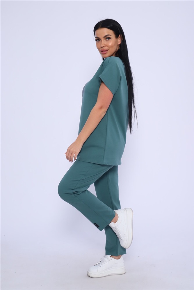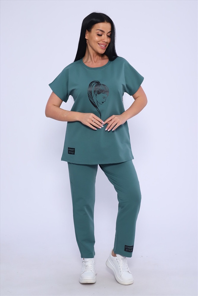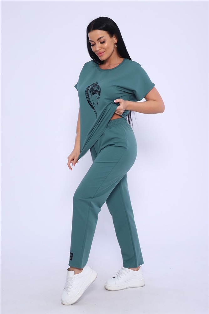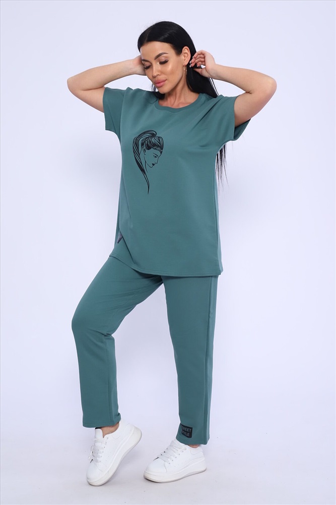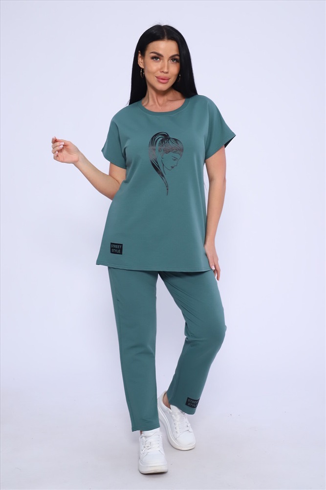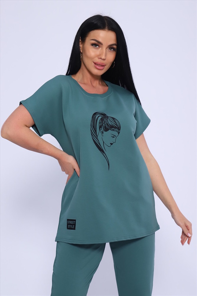 ID товара: 983867 Состав: 85% Хлопок; 15% Лайкра Сезон: Весна/Лето Длина: Полная Фасон: Прямой Рукав: короткие Крой брючин: Прямой Рисунок: Фантазийный Декоративные элементы: Принт Основная ткань: Хлопок Стиль: повседневный Вид ткани: Футер с лайкрой 2-х нитка Страна бренда: Россия Страна производства: Россия Легкий женский костюм прямого силуэта. Верх двойки - футболка с коротким рукавом и округлой горловиной. Футболка свободная с принтом. Низ - прямые брюки без карманов, пояс на резинке. Данная модель подойдет как и для повседневной носки, так и для дома. Удобный и приятный костюм. Рост модели на фото 165, размер 48. Комментарии к товару