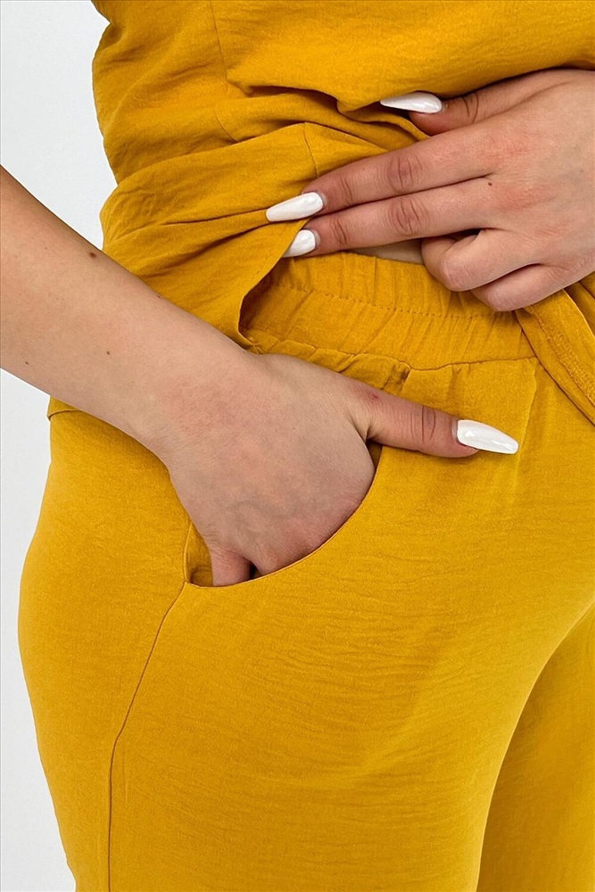 ID товара: 978195 Состав: 100% Полиэстер Сезон: Весна/Лето Длина: Полная Фасон: Прямой Рукав: короткие Крой брючин: Прямой Рисунок: Надпись Тип карманов: С отрезным бочком Декоративные элементы: Принт Основная ткань: Полиэстер Стиль: повседневный Вид ткани: Сингапур Страна бренда: Россия Страна производства: Россия Женская двойка прямого кроя. Футболка костюма с коротким цельнокроеным рукавом, округлой горловиной и принтом на передней полочке, брюки с поясом на резинке (4 см) и карманами. Комплект достаточно свободный, поэтому подойдет для повседневной носки, как и для дома, так и на прогулку. Костюм представлен в двух приятных расцветках, выполнен из легкой ткани - сингапур, что идеально подойдет для жаркой погоды, красивый, но при этом простой и удобный. Комментарии к товару