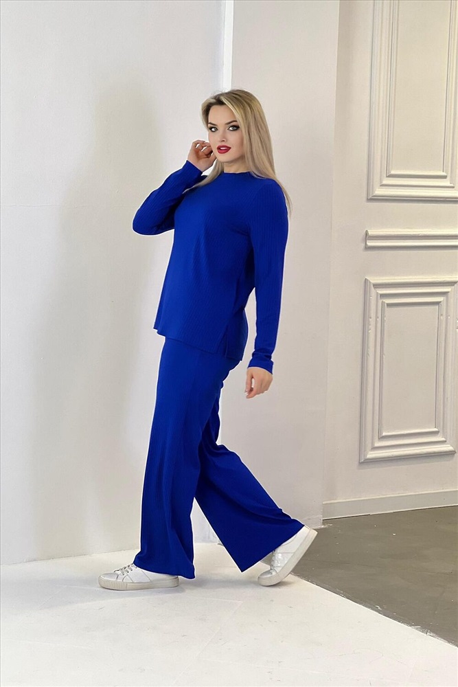 ID товара: 988880 Состав: 60% Полиэстер, 35% Вискоза, 5% Эластан Сезон: Весна/Лето Длина: Полная Фасон: Свободный Рукав: длинные Крой брючин: Широкий Декоративные элементы: Разрезы Основная ткань: Полиэстер Стиль: повседневный Вид ткани: Лапша Страна бренда: Россия Страна производства: Россия Стильный женский трикотажный костюм из ткани лапши. Комплект состоит из кофты с длинным рукавом и разрезами снизу по бокам и брюк широкого кроя с поясом на резинке и карманами по бокам. Модель подойдет для вечернего и повседневного образа, отлично сочетается как с кроссовками, так и с туфлями. Костюм отлично подходит для прогулки, выезда на природу или похода в ресторан. Удобный свободный вверх отличный вариант на лето, приятные к телу штаты удобны и практичны. Комментарии к товару