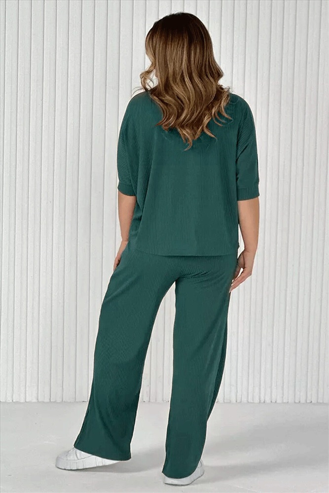 Стильный женский трикотажный костюм из ткани лапши. Комплект состоит из футболки - летучая мышь и брюк широкого кроя с поясом на резинке и карманами по бокам. Модель подойдет для вечернего и повседневного образа, отлично сочетается как с кроссовками, так и с туфлями. Костюм отлично подходит для прогулки, выезда на природу или похода в ресторан. Удобный свободный вверх отличный вариант на лето, приятные к телу штаты удобны и практичны. Длина рукава указана от горловины, а футболка костюма достаточно свободная, поэтому подойдет на любую фигуру. Важно! Подбирая для себя нужный размер, смотрите на замеры брюк.